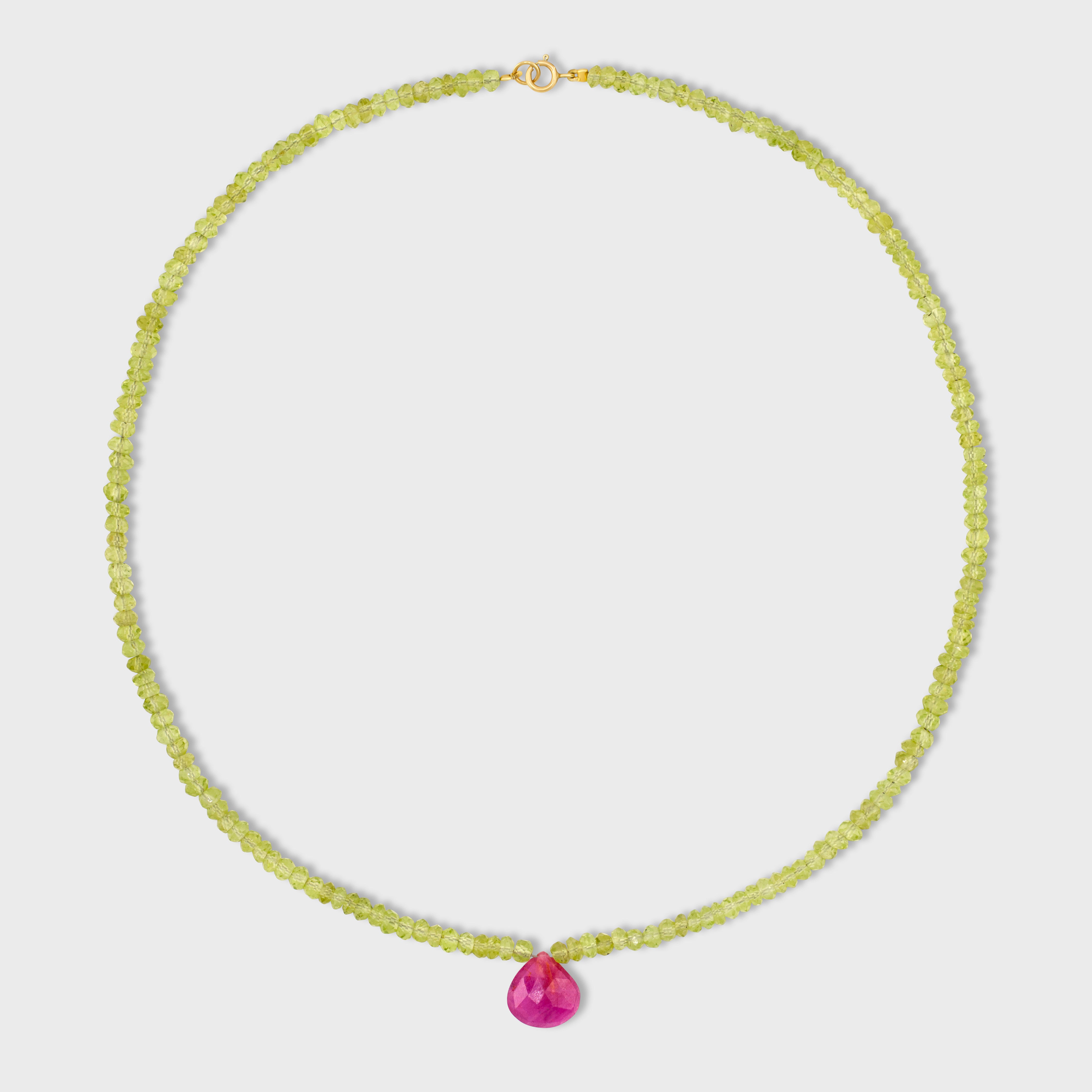 Arizona Pink Sapphire Peridot Gem Drop Necklace