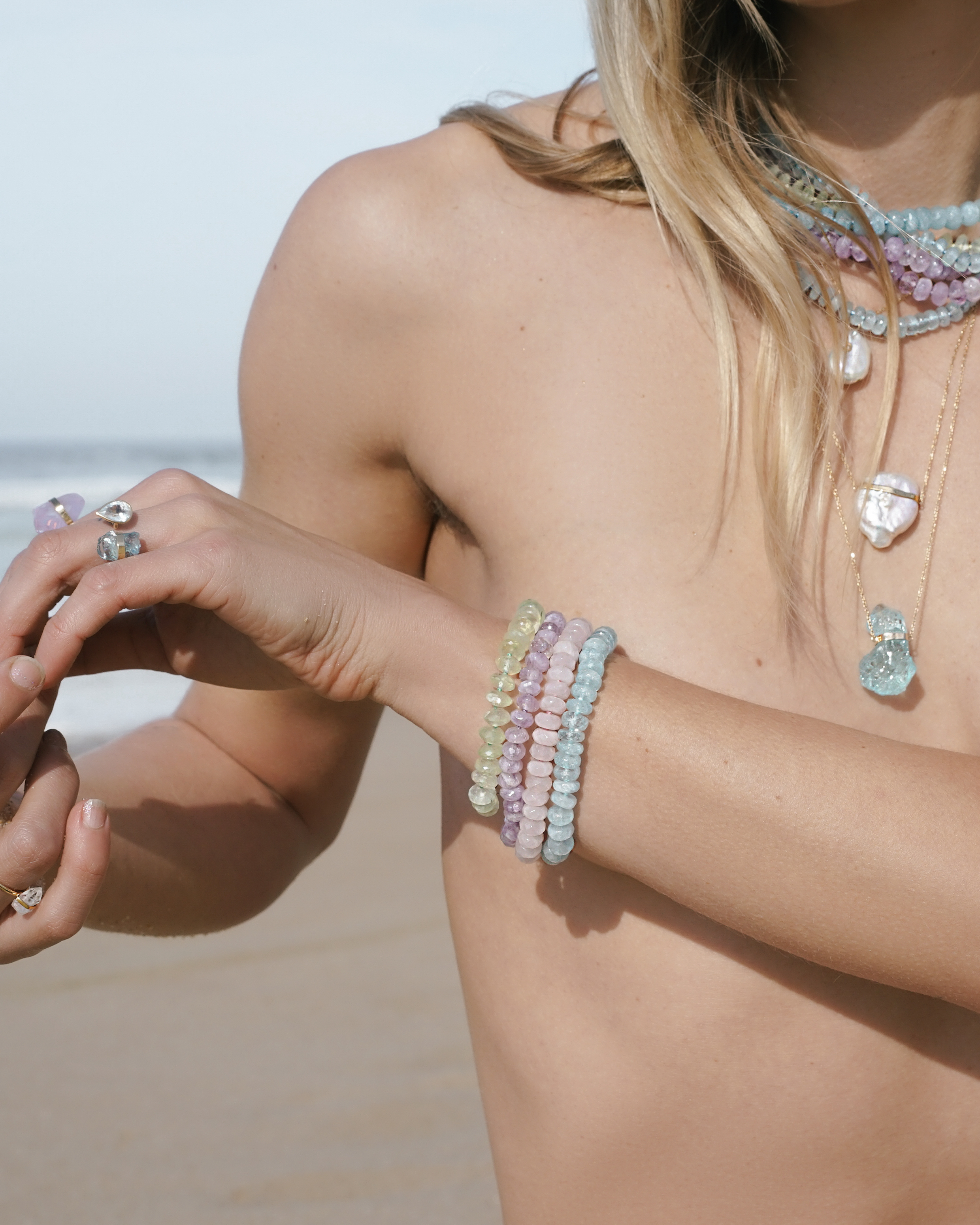 Each beaded jewelry piece is hand strung from the highest quality materials that are cut from natural mineral sources. They are sensitive to prolonged exposure to hairsprays and scents. To ensure longevity please be gentle and avoid tugging and pulling of these pieces.