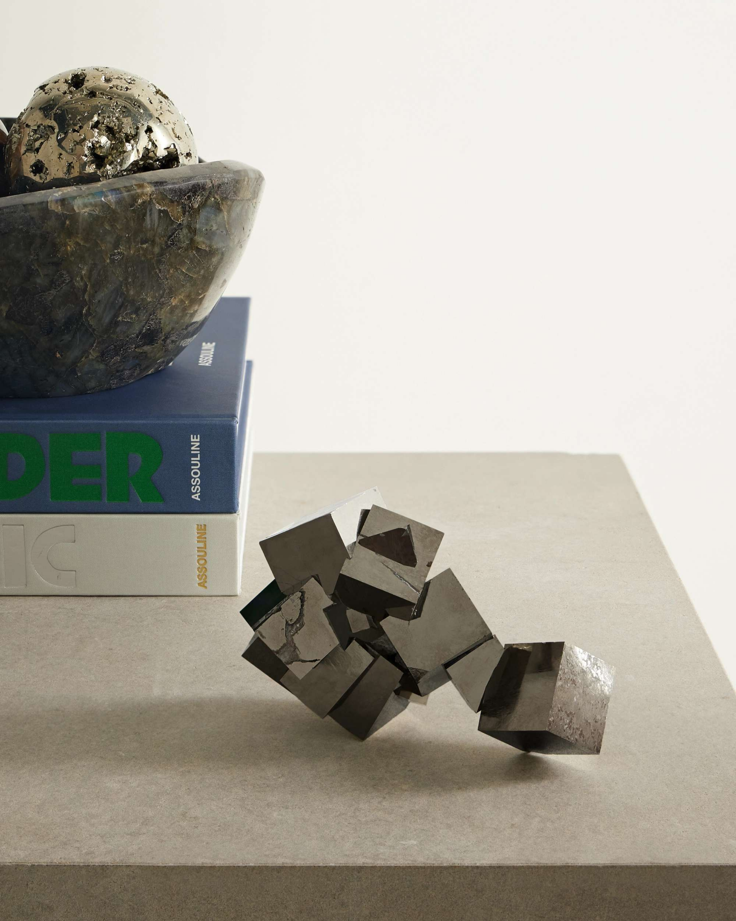 This Pyrite Cube from Peru is natural in shapes coming straight from the mine. It has a metallic sheen, symbolizing strength and protection. Known for its grounding properties, it also brings abundance and prosperity into your space. A striking and unique statement piece for any collection.