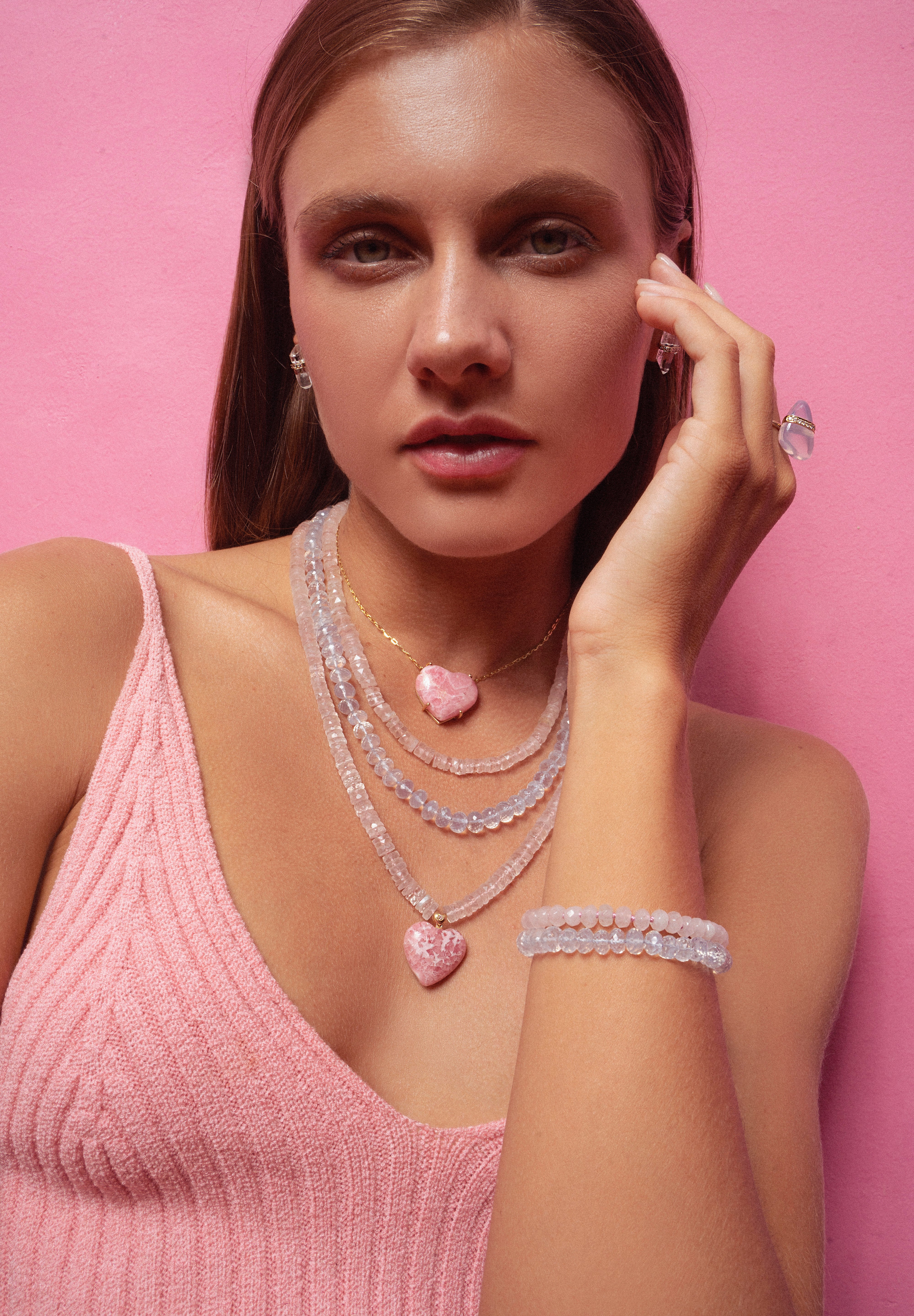 Each beaded jewelry piece is hand strung from the highest quality materials that are cut from natural mineral sources. They are sensitive to prolonged exposure to hairsprays and scents. To ensure longevity please be gentle and avoid tugging and pulling of these pieces.