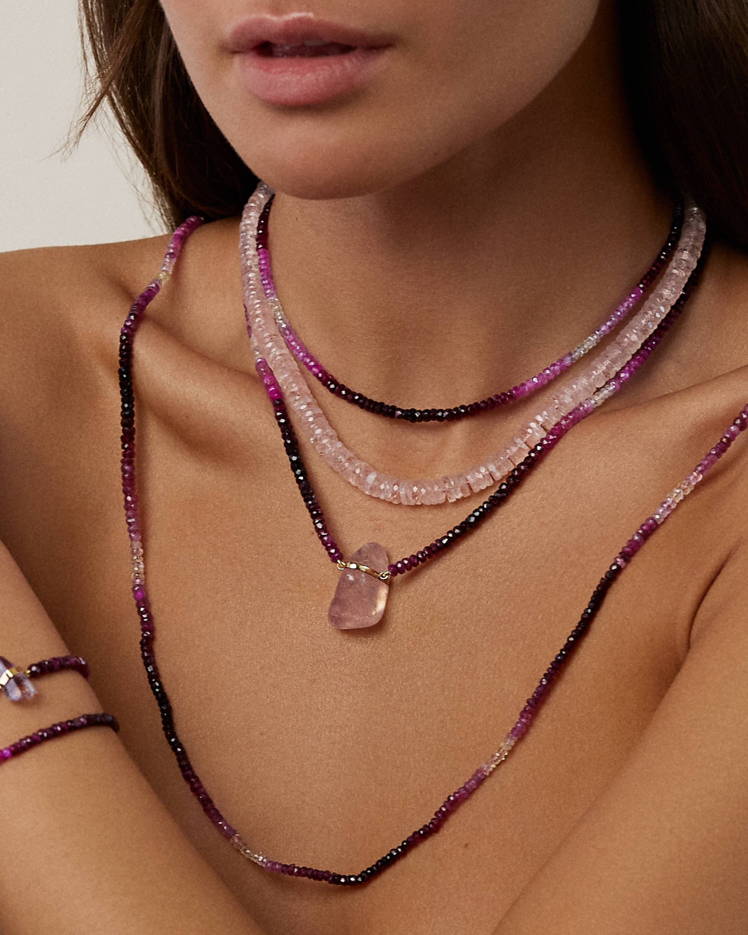 Each beaded jewelry piece is hand strung from the highest quality materials that are cut from natural mineral sources. They are sensitive to prolonged exposure to hairsprays and scents. To ensure longevity please be gentle and avoid tugging and pulling of these pieces.