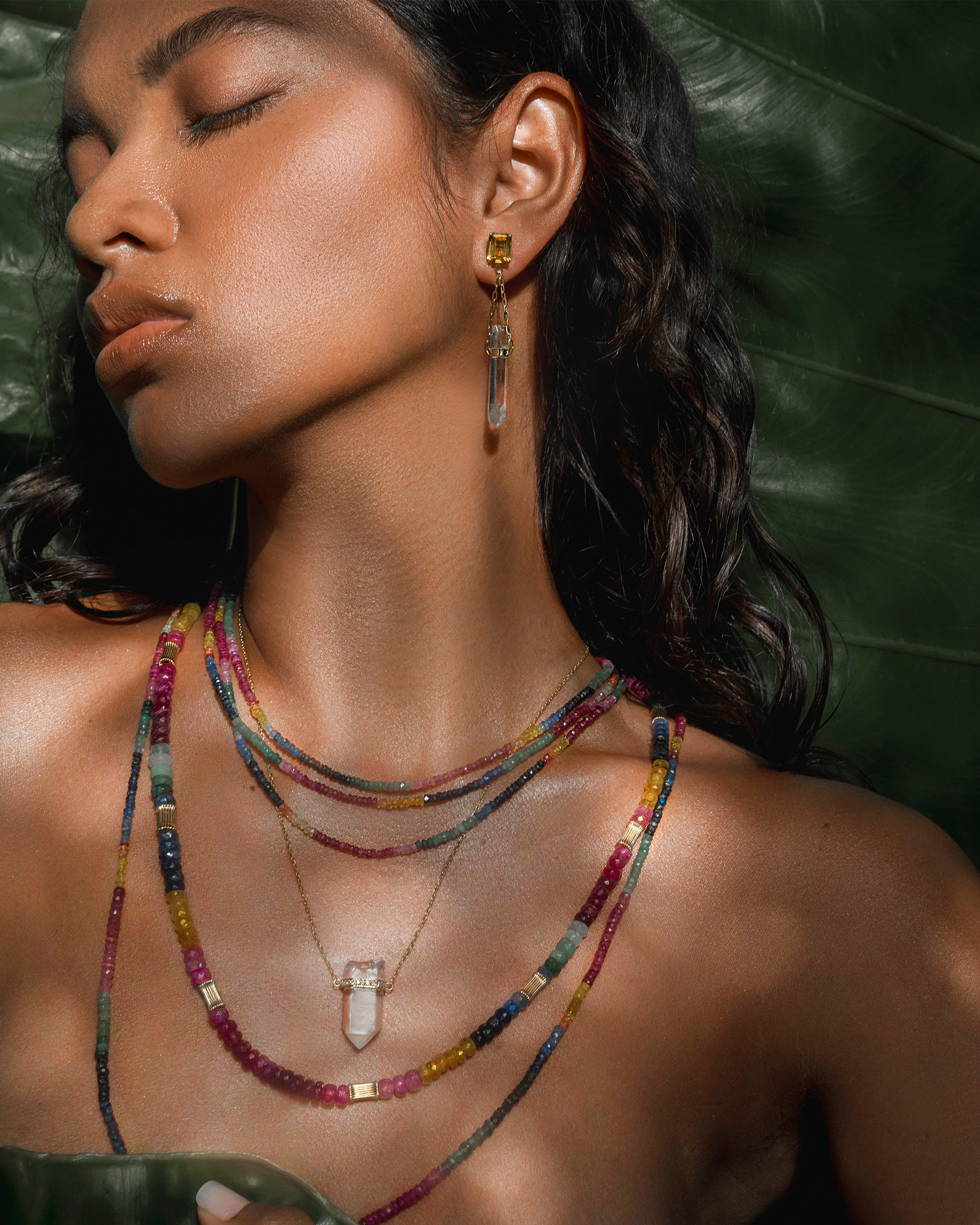Each beaded jewelry piece is hand strung from the highest quality materials that are cut from natural mineral sources. They are sensitive to prolonged exposure to hairsprays and scents. To ensure longevity please be gentle and avoid tugging and pulling of these pieces.