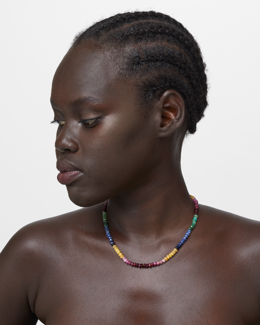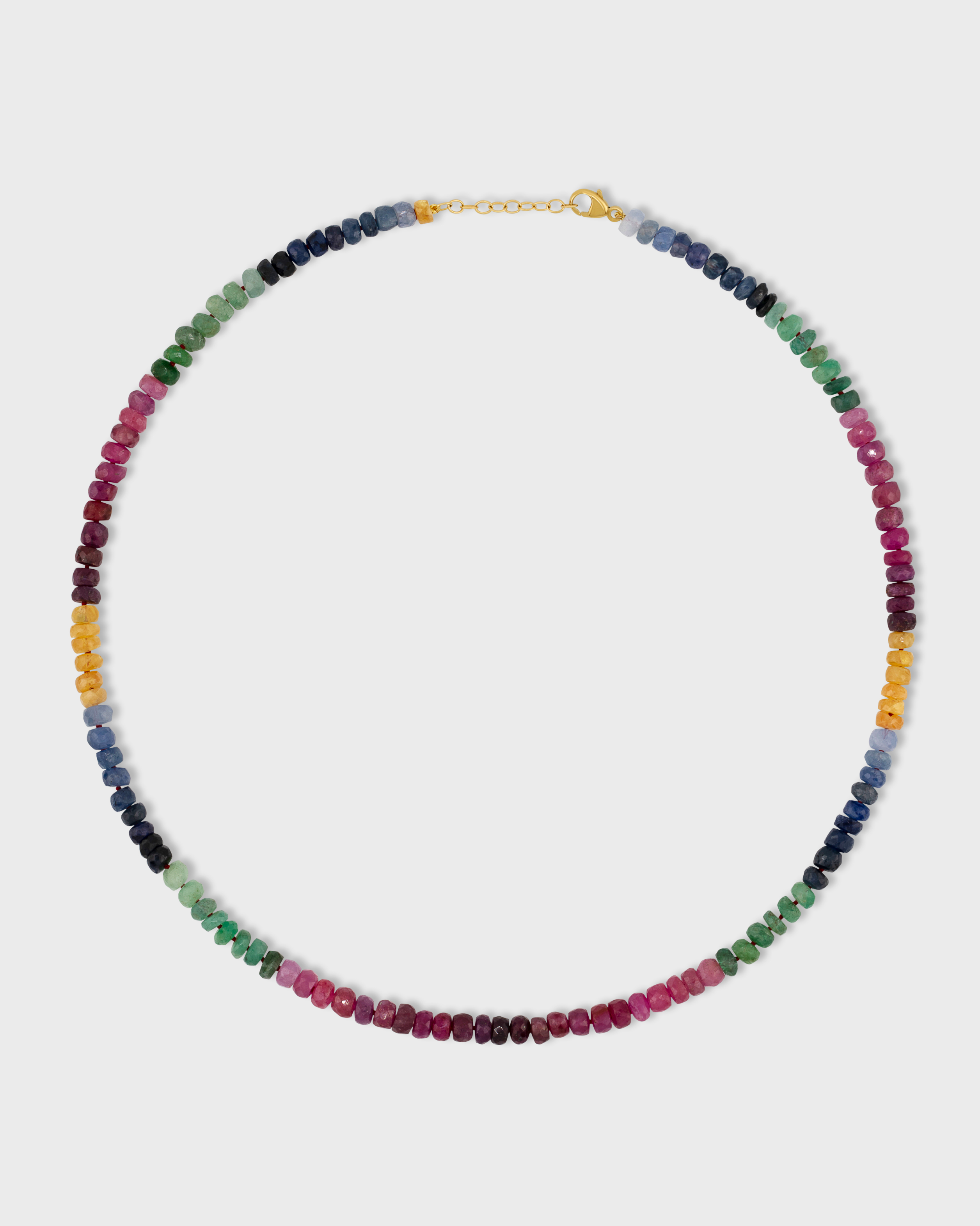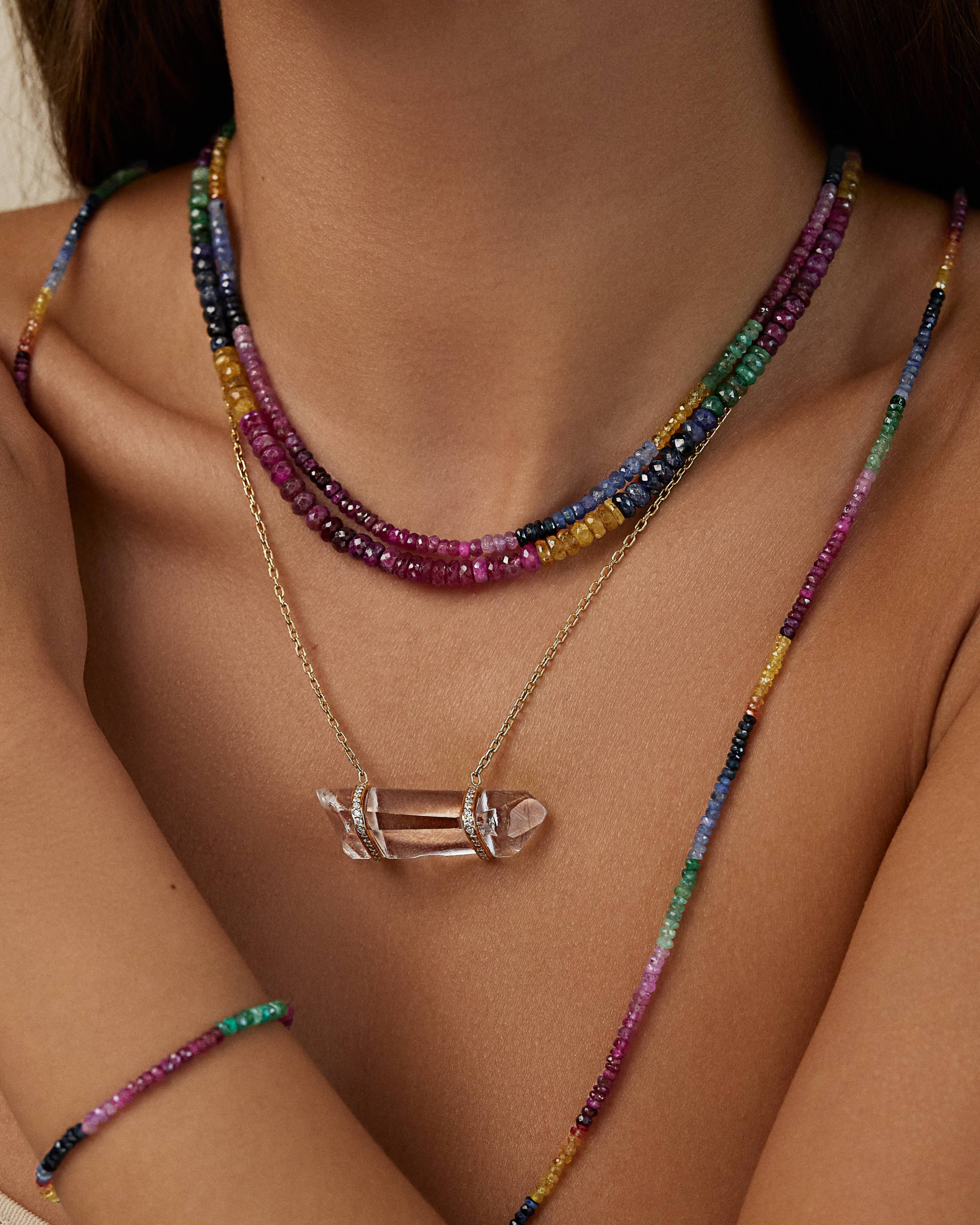 Bold and colorful, this necklace features large rainbow sapphires that demand attention. It's a statement piece for those who love to stand out with their accessories.