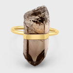 The Master of all grounding stones, the Smoky Quartz. Natural, uncut, untreated, unpolished one of a kind mineral custom hand set in 14 karat yellow gold..