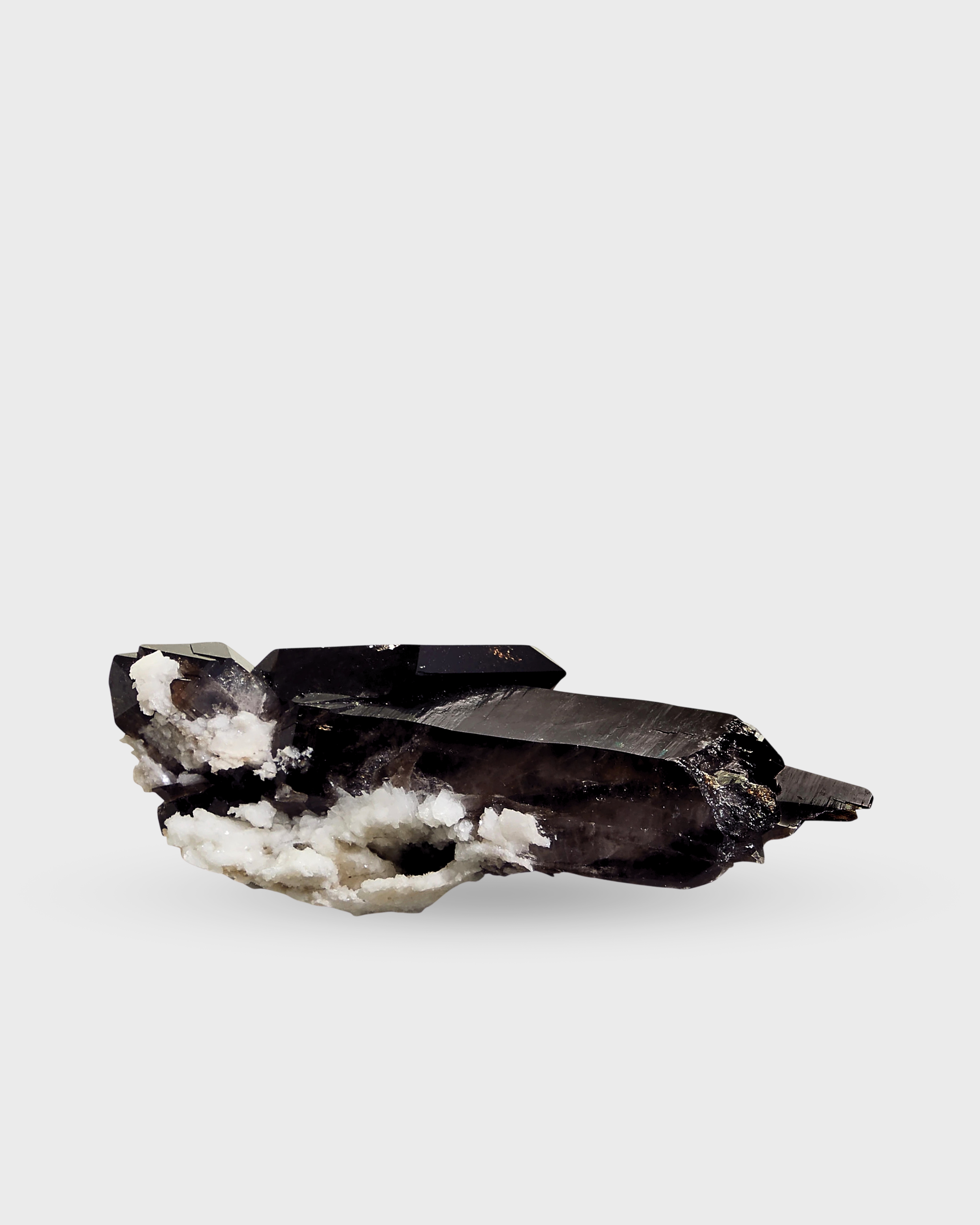 This stunning Smoky Adularia Cluster showcases smoky quartz crystals adorned with soft adularia. Known for its grounding and stabilizing properties, this natural formation promotes clarity and balance. A unique addition to any collection or meditation space.