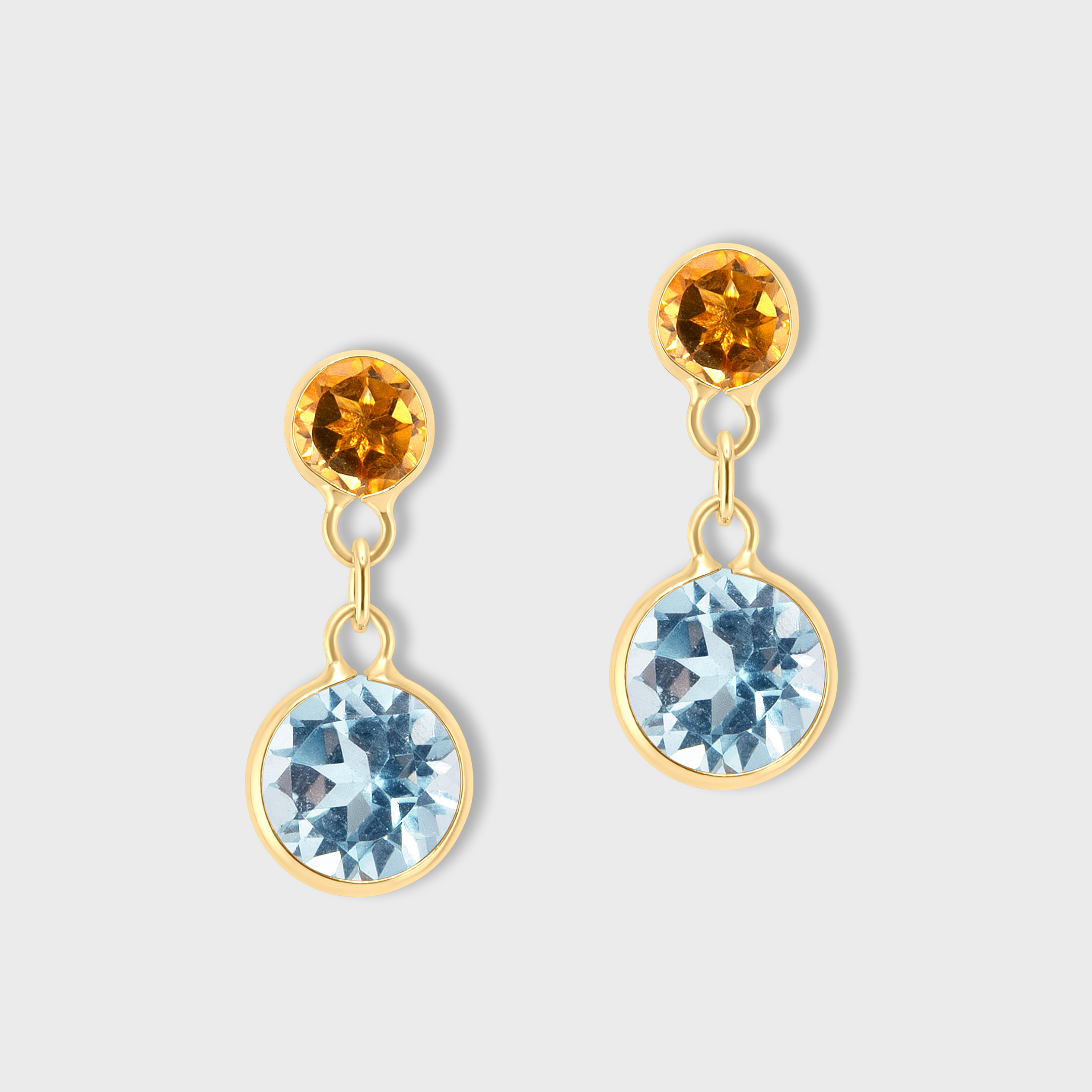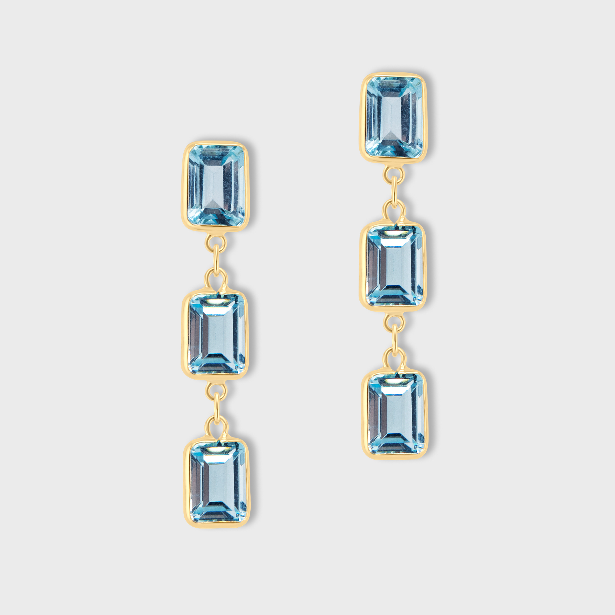 Chakra Blue Topaz Gold Bezel Drop Earrings