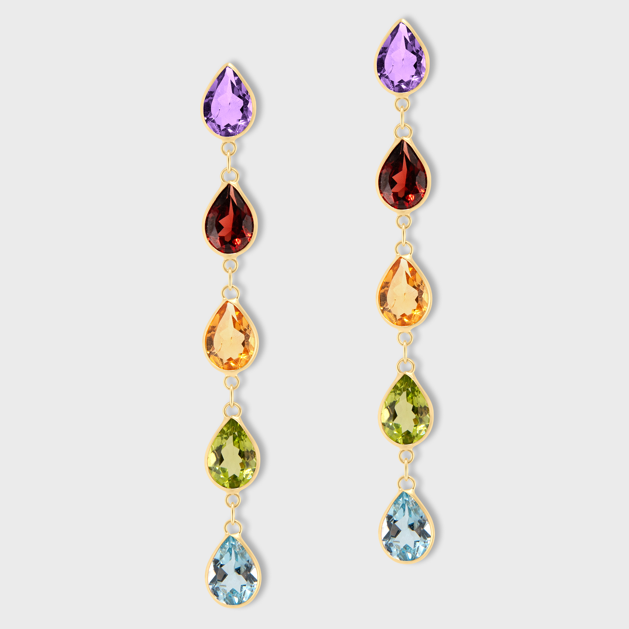 Chakra Rainbow Gemstone Five Teardrop Earrings
