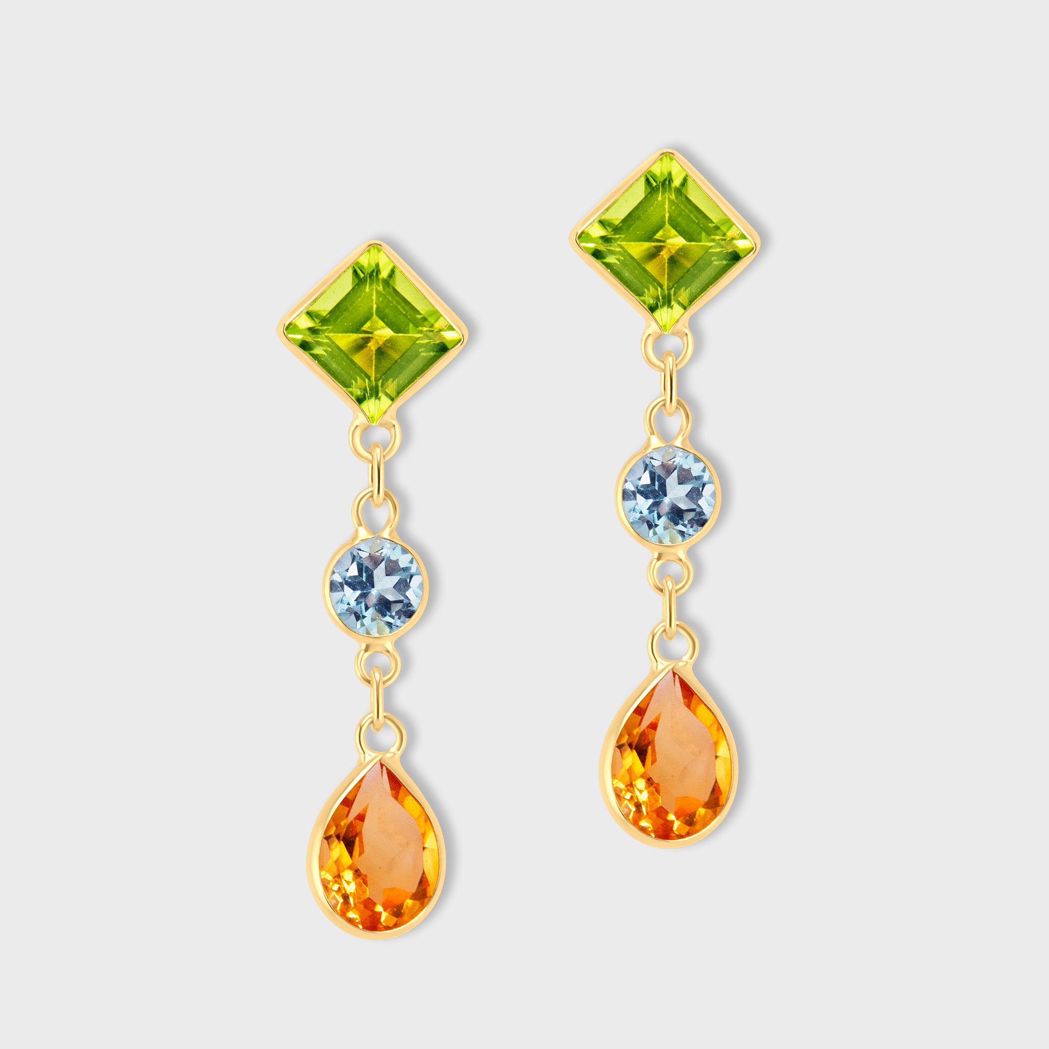 Chakra Peridot Topaz Citrine Dangle Earrings