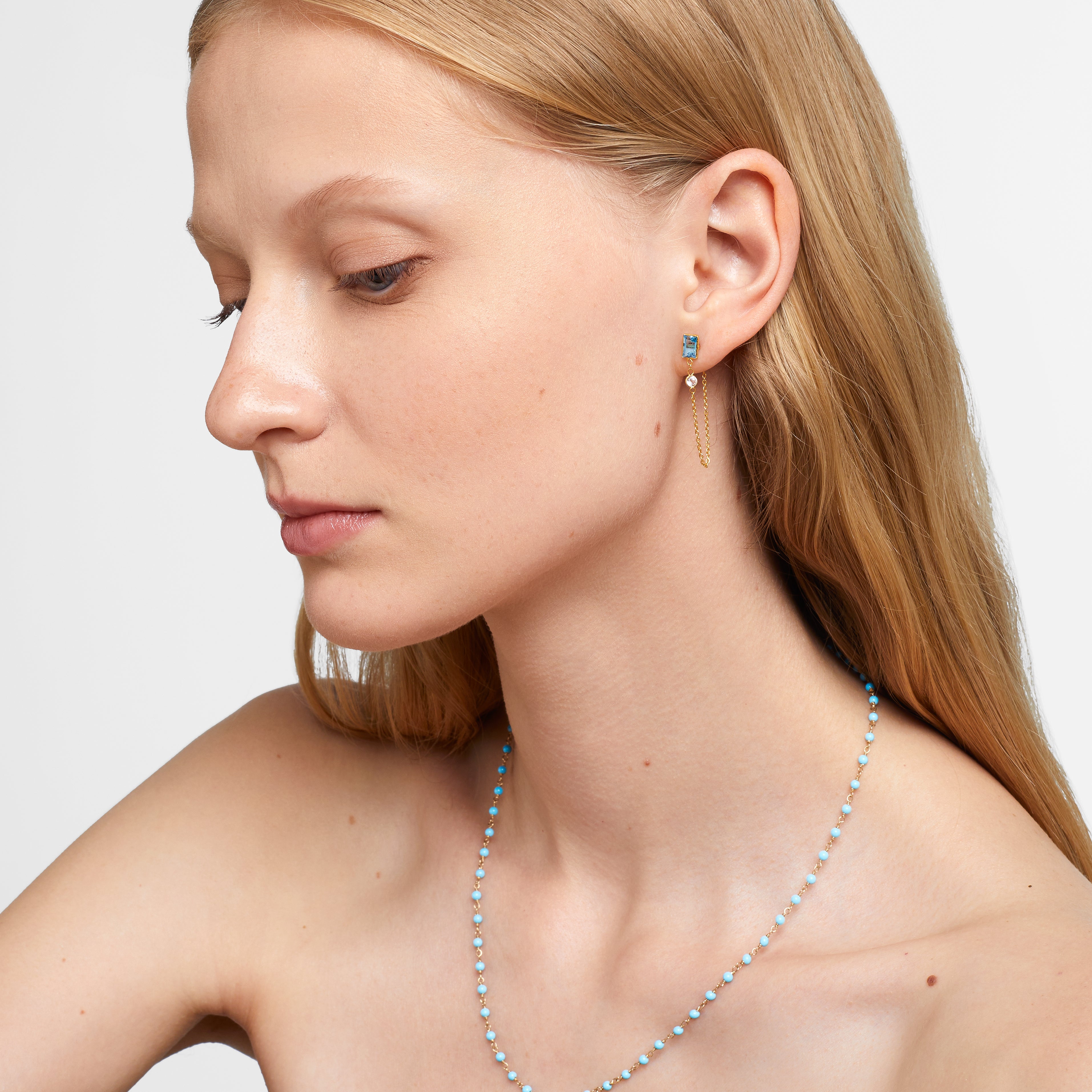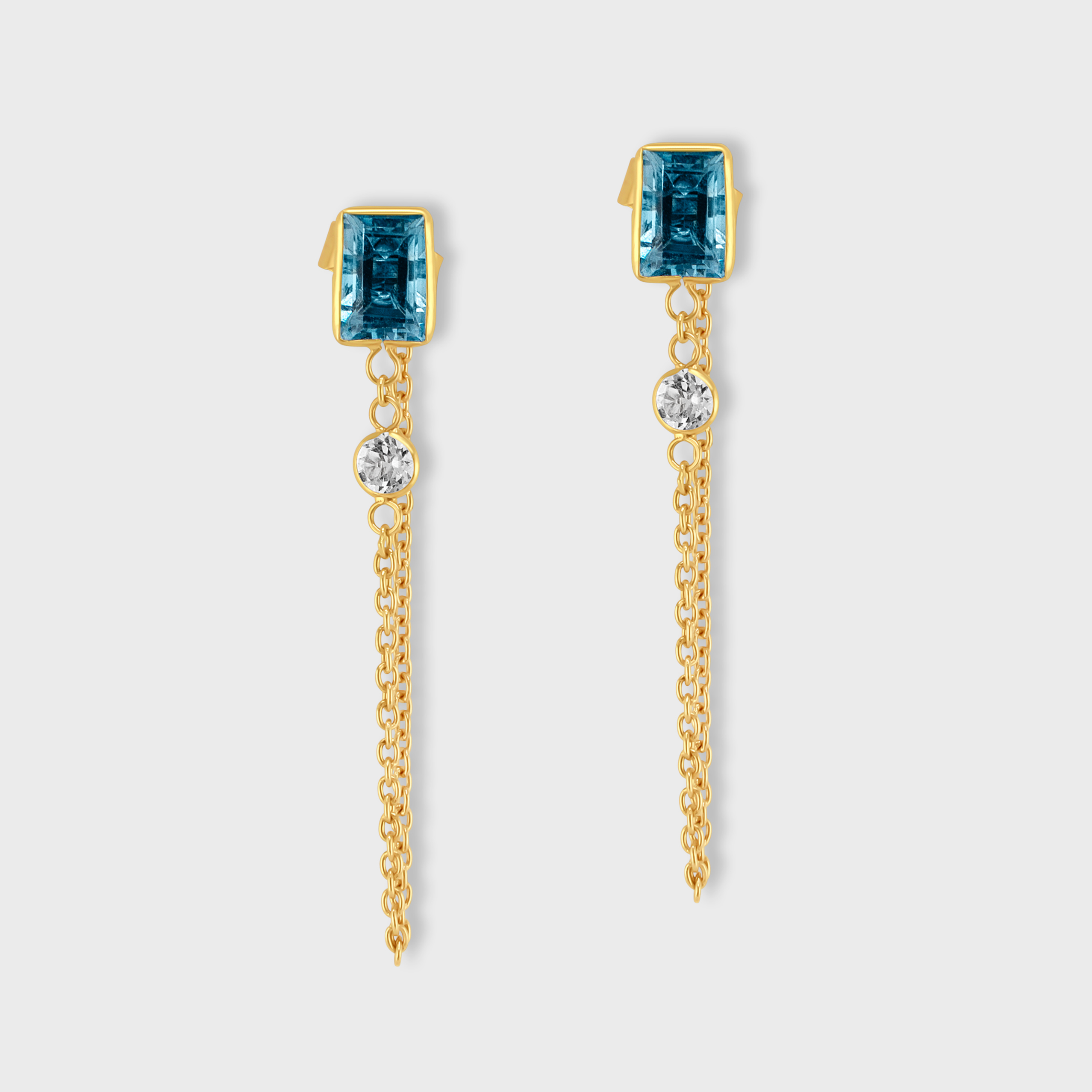 Chakra Topaz Diamond Gold Chain Earrings