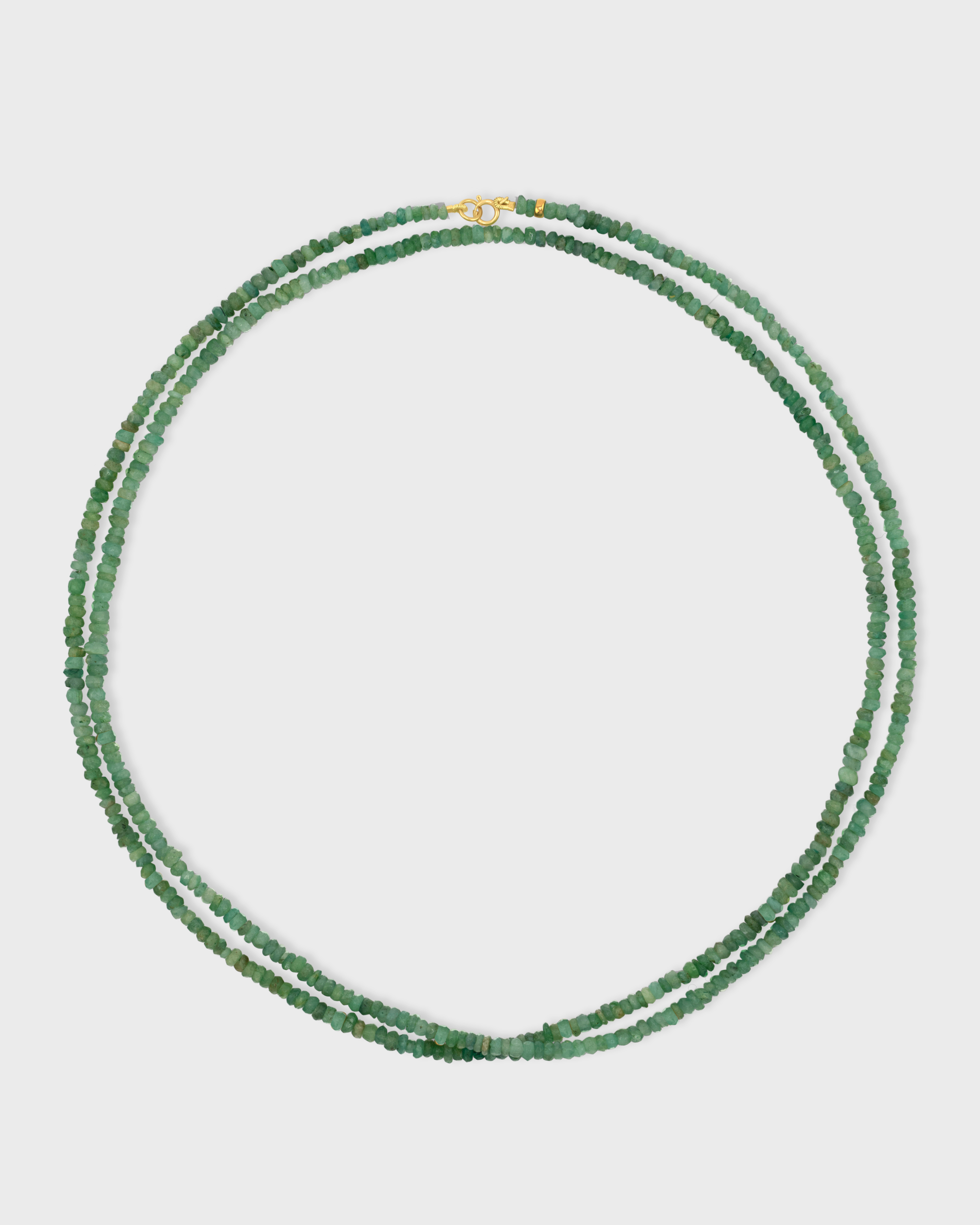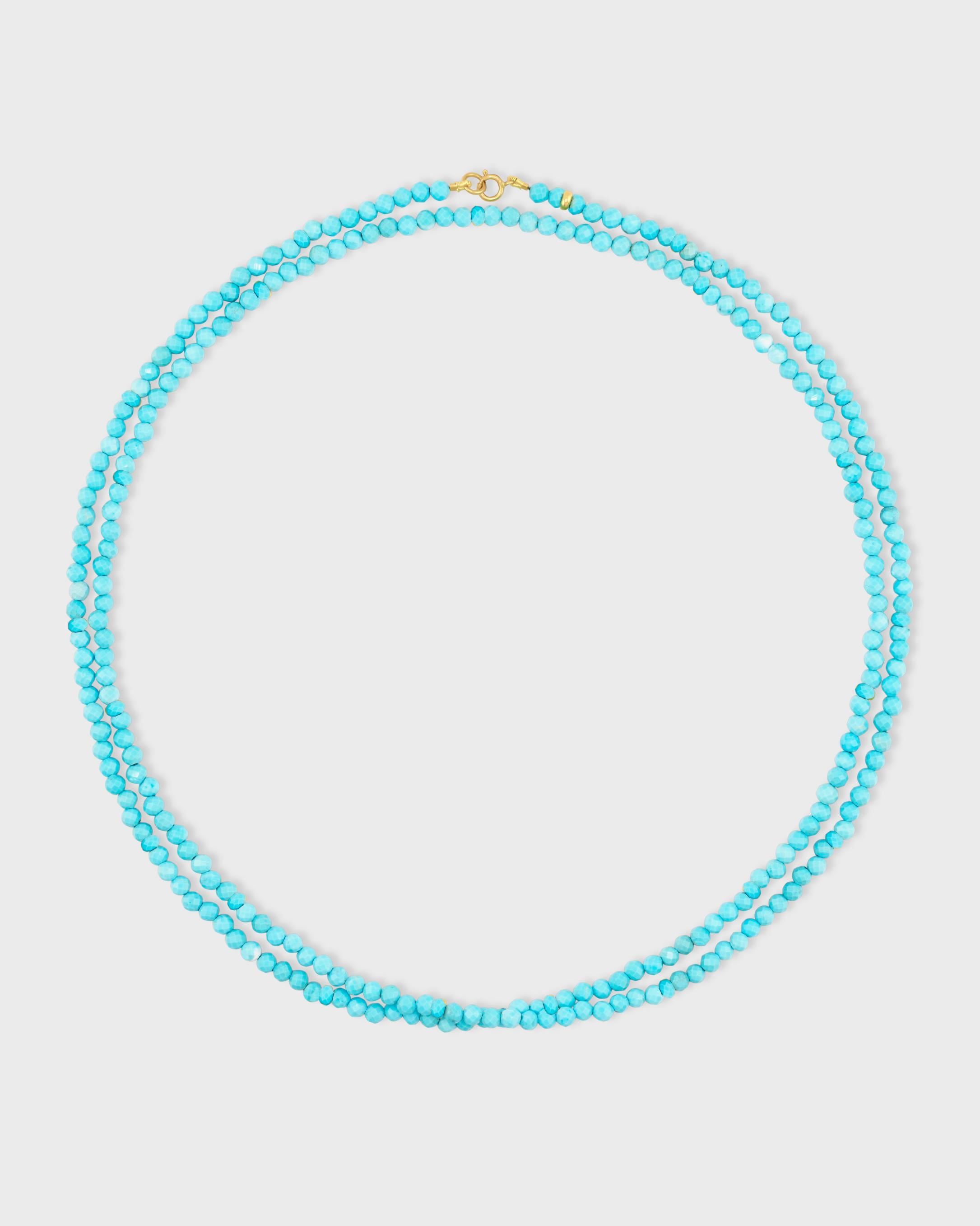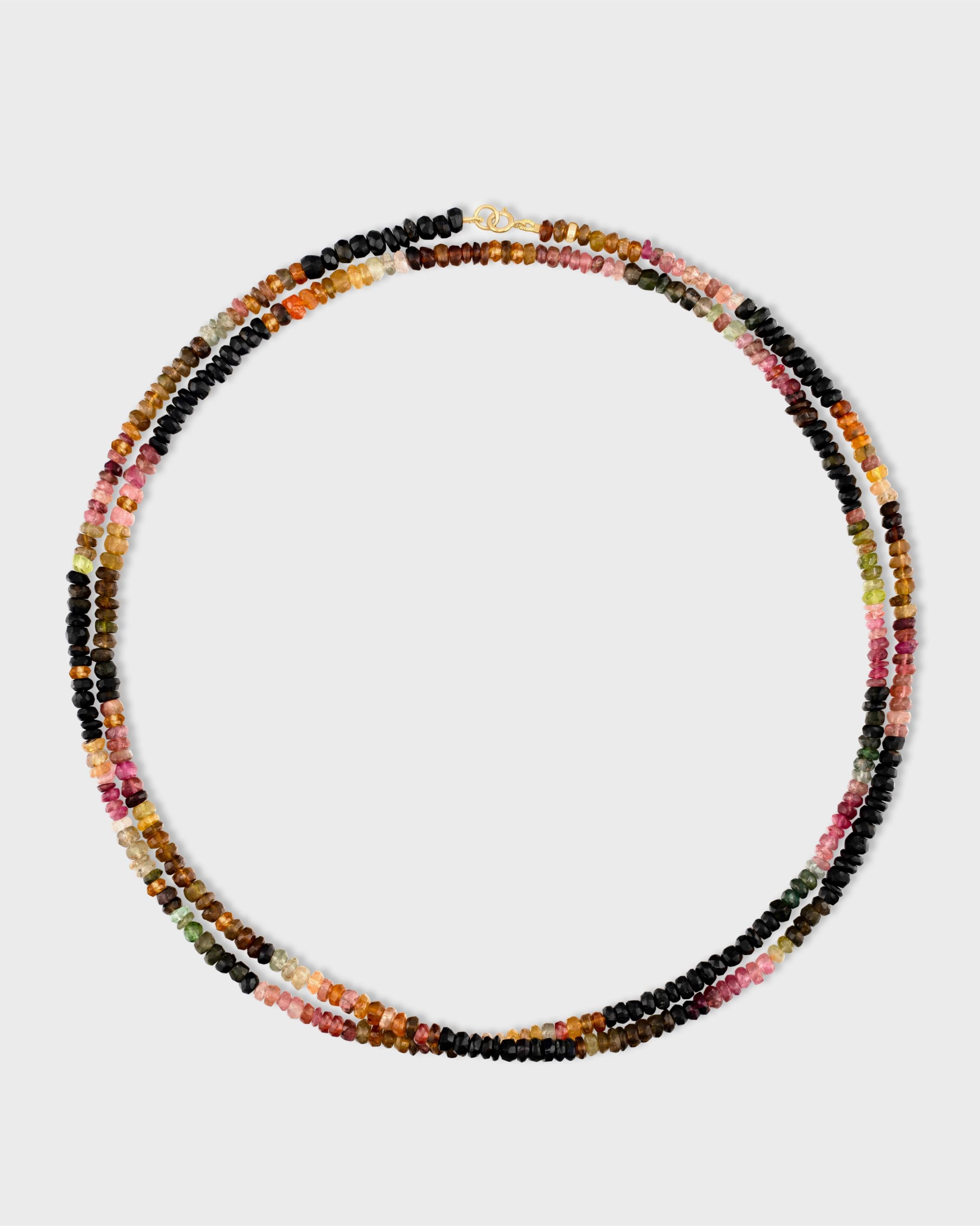A double long strand of faceted tourmaline beads, hand-strung and finished with a delicate gold clasp. Designed to be worn long or doubled for effortless layering, this piece celebrates the beauty of natural color and form.