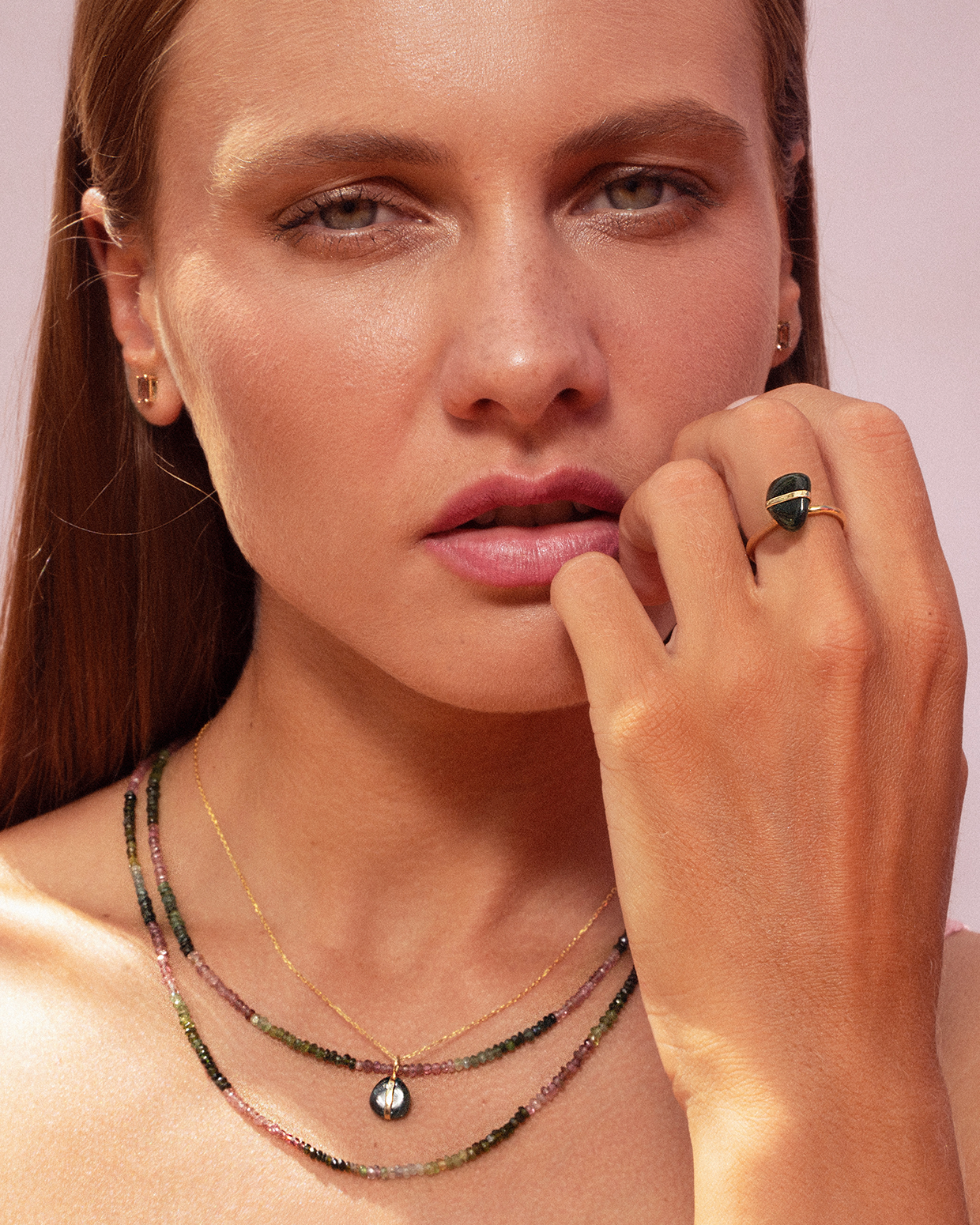 Each beaded jewelry piece is hand strung from the highest quality materials that are cut from natural mineral sources. They are sensitive to prolonged exposure to hairsprays and scents. To ensure longevity please be gentle and avoid tugging and pulling of these pieces.