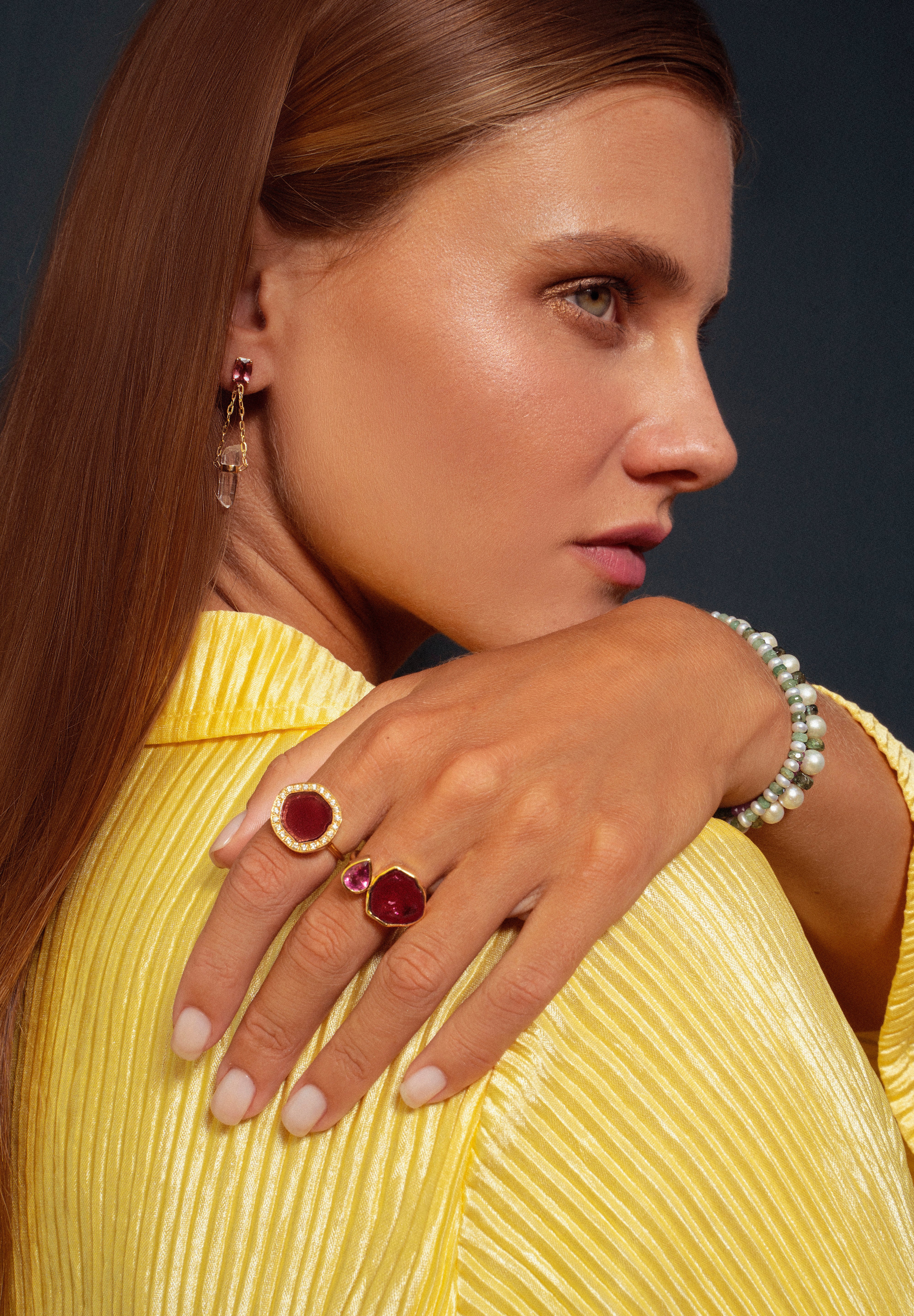 Tourmaline is one of Jia-Jia's favorite gemstones. She has collected them over time for their beautiful gemmy colors and unique shapes. This collection brings these archived pieces of gemstones to life through jewelry. Each piece is custom hand made locally in New York City.