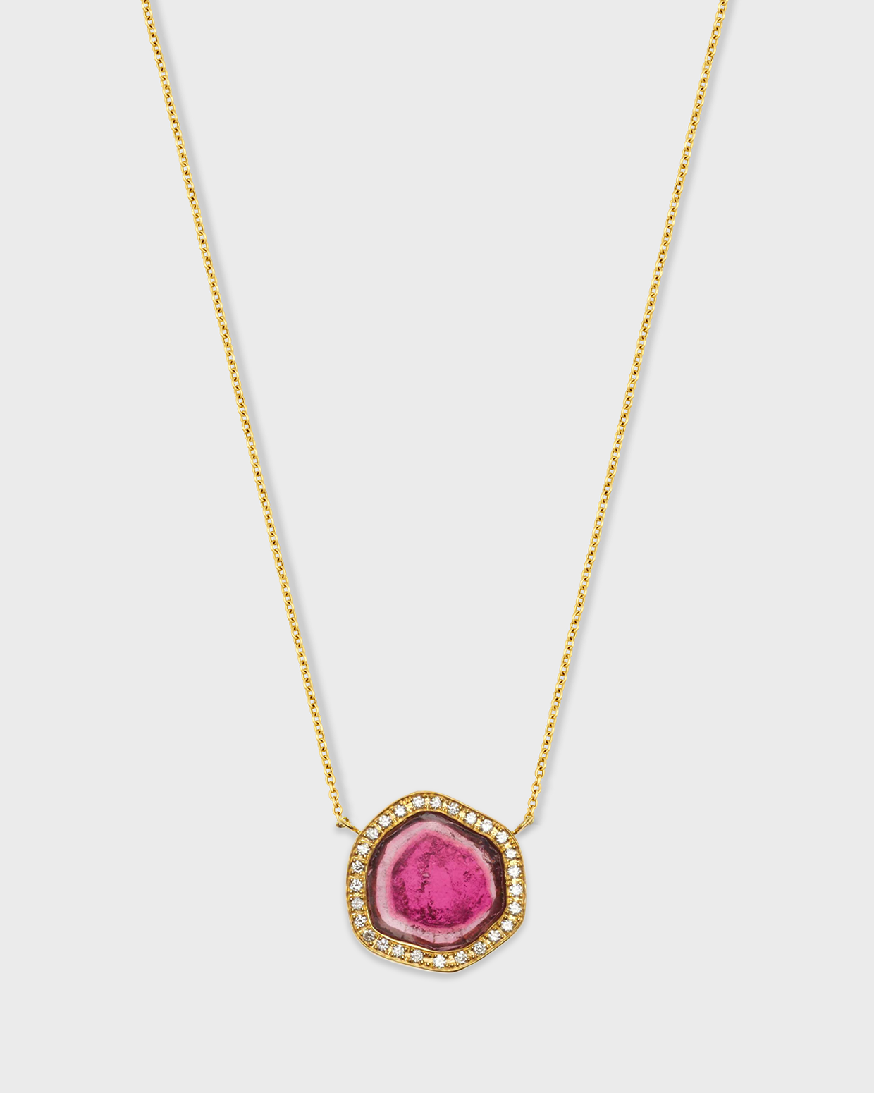 Treasure Tourmaline Slice Diamond Halo Necklace