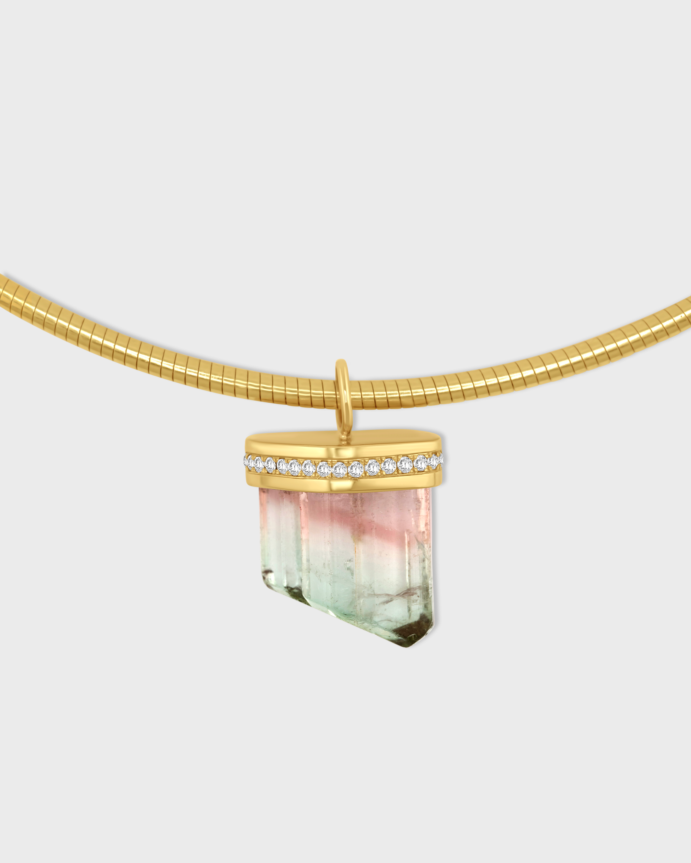 14k gold collar with a stunning watermelon tourmaline gemstone diamond cap charm.