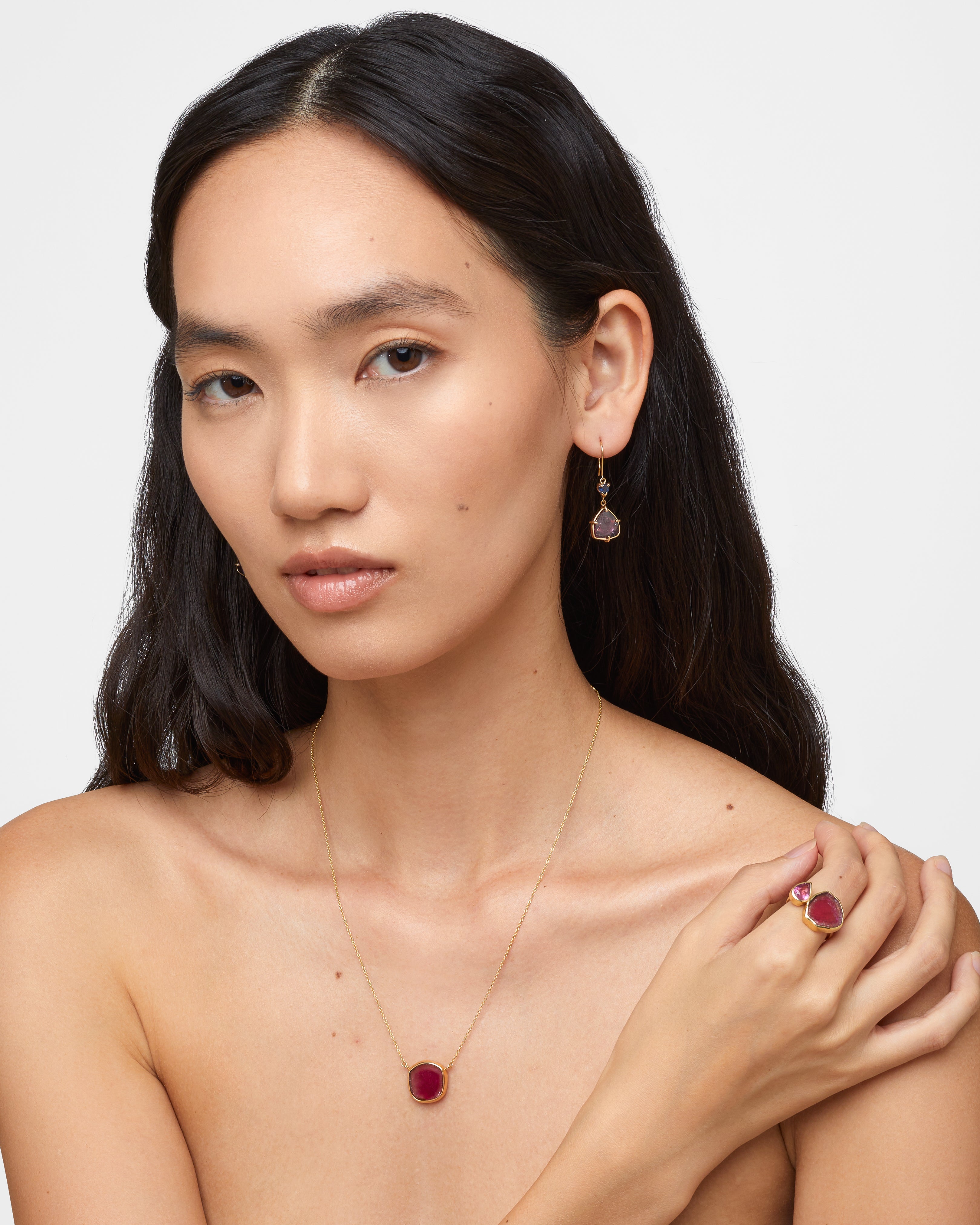 Tourmaline is one of Jia-Jia's favorite gemstones. She has collected them over time for their beautiful gemmy colors and unique shapes. This collection brings these archived pieces of gemstones to life through jewelry. Each piece is custom hand made locally in New York City.