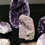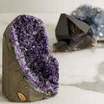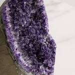 This stunning Amethyst Dark Druzy Geode from Brazil showcases deep, rich purple hues with clear, sparkling mini clusters. Carefully shaped and polished, this geode highlights the natural beauty and powerful energy of amethyst, making it a perfect addition for those seeking tranquility and spiritual clarity. Each piece is unique, ensuring an authentic and one-of-a-kind treasure for your space.