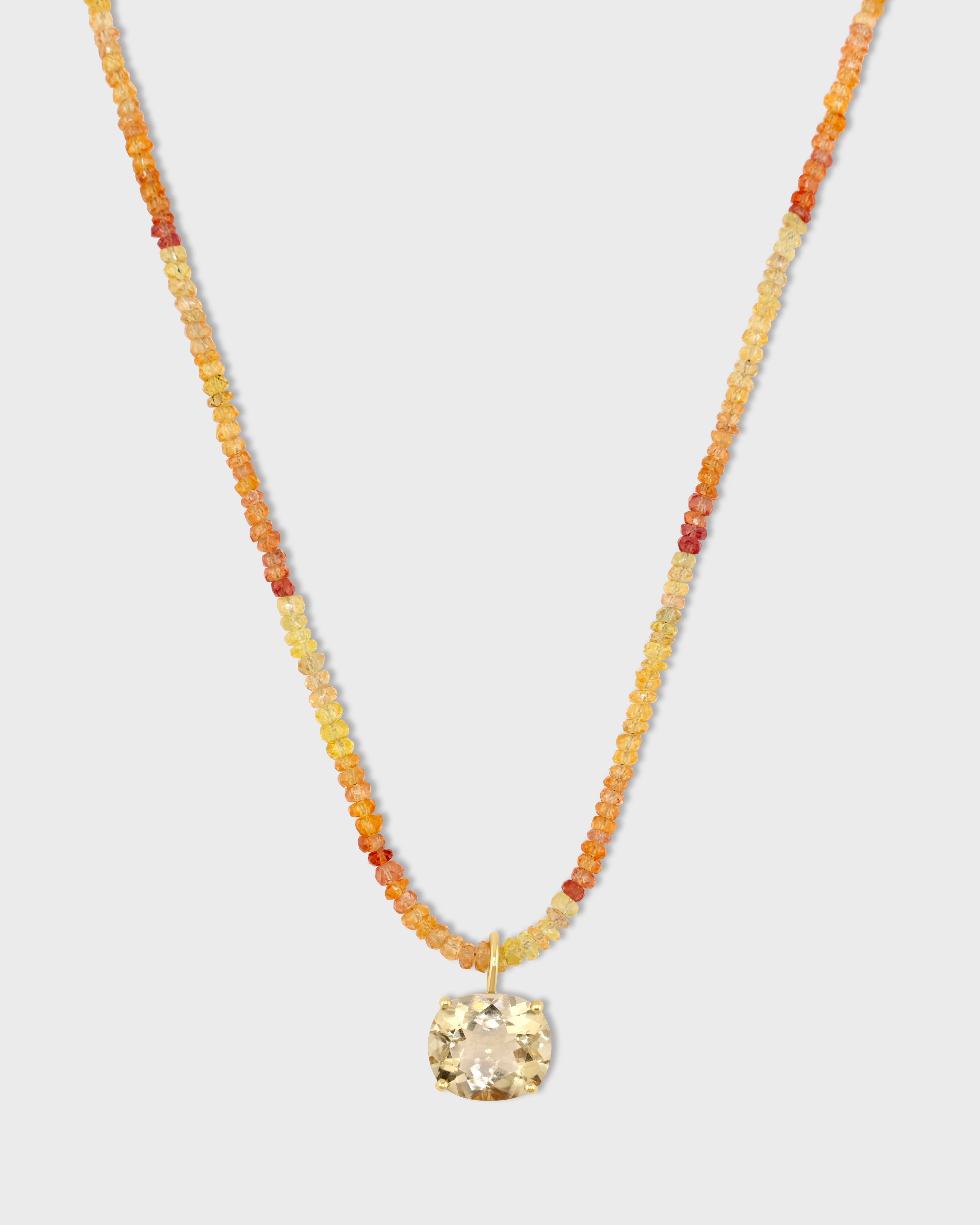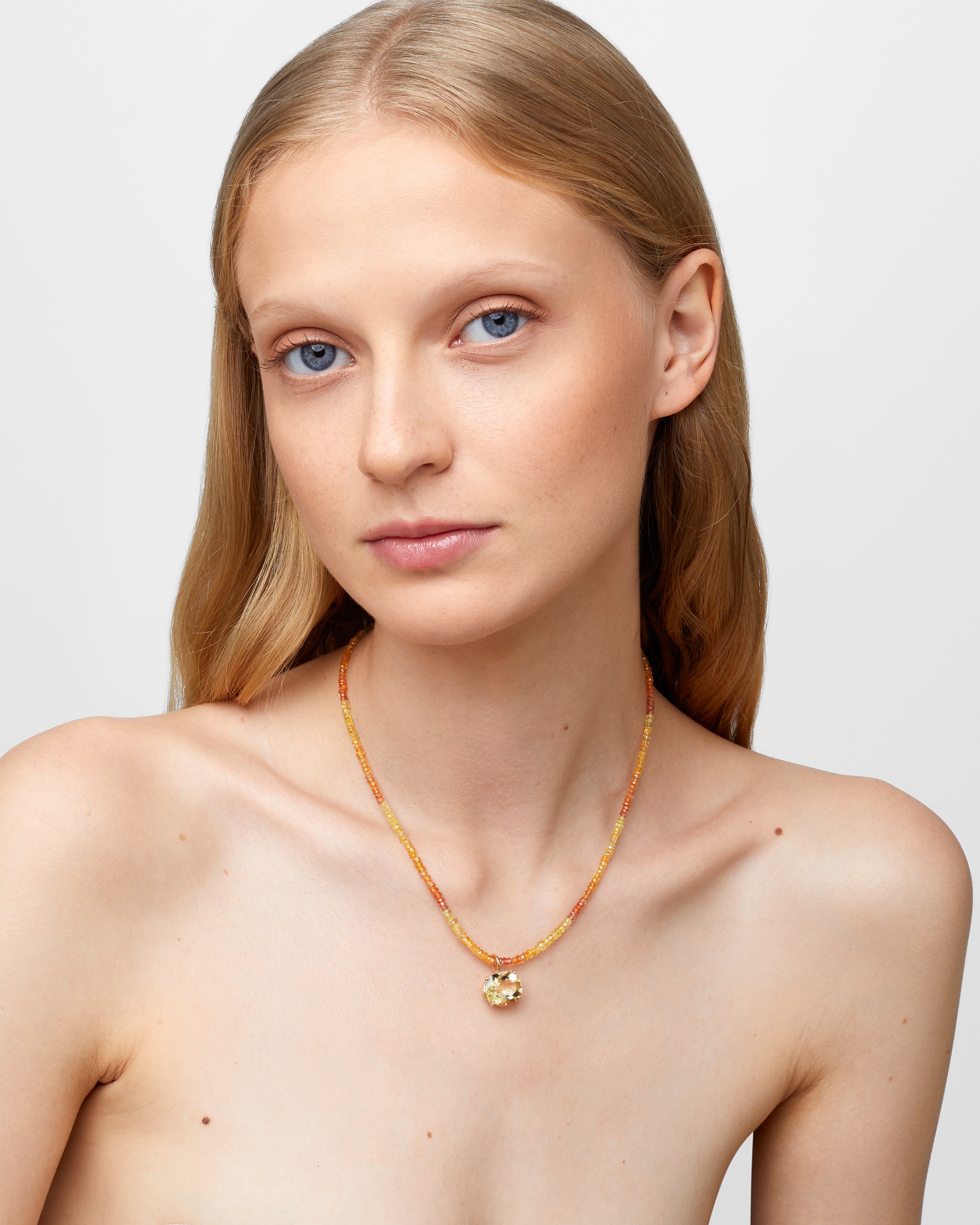 A bright and energetic necklace, featuring vibrant citron gemstones, perfect for adding a pop of color to any look. The refreshing hues of yellow and green represent positivity and new beginnings, bringing both warmth and elegance.