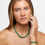 Radiating vibrant green tones, this emerald quartz bracelet is a stunning nod to nature's beauty. Its smooth, polished stones make it a versatile piece for both casual and formal wear.