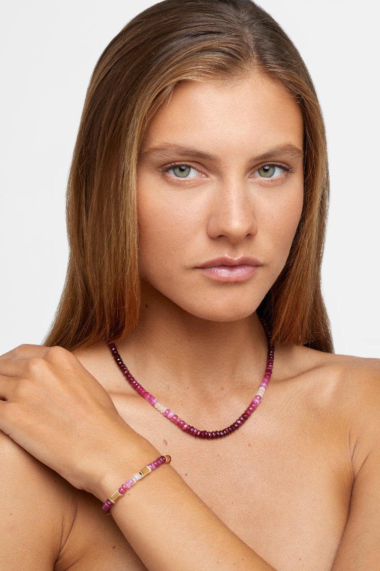 Rubies symbolize power, passion, and protection. When worn as a talisman, ruby was believed to help protect warriors in battle. It deeply resonates with the base chakra, which can result in an increase of strength, stamina, sense of security and personal power.