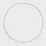 The Moonstone Gem Drop Necklace features delicate moonstone beads, interspersed with smooth moonstone gem drops. This ethereal design captures the subtle glow of moonstone, creating a serene and sophisticated piece that enhances any outfit with its soft, luminous charm.