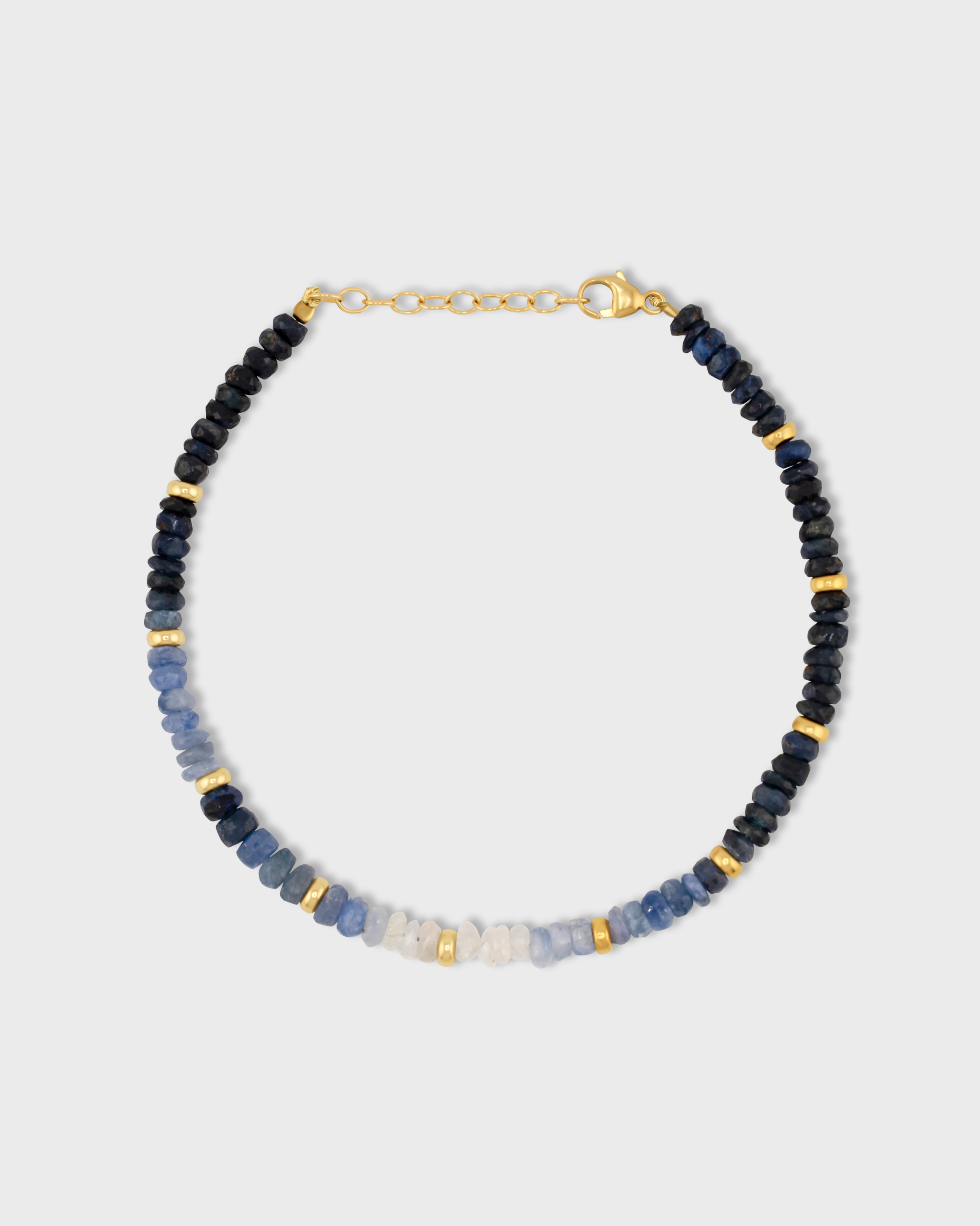 Blue Sapphire ombre bracelet with mini gold beads for all year round. Wear on its own or layer with all your favorite bracelets.