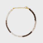 Grounding smoky quartz bracelet hand strung and finished in 14 karat gold.