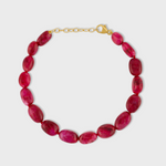 This vivid ruby quartz bracelet features smooth, oval-shaped stones showcasing their rich crimson hue. Perfect for adding a touch of elegance and boldness to any outfit.