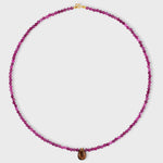 A radiant strand of ruby beads accented with a smoky quartz teardrop, channeling balance, vitality, and calm energy.