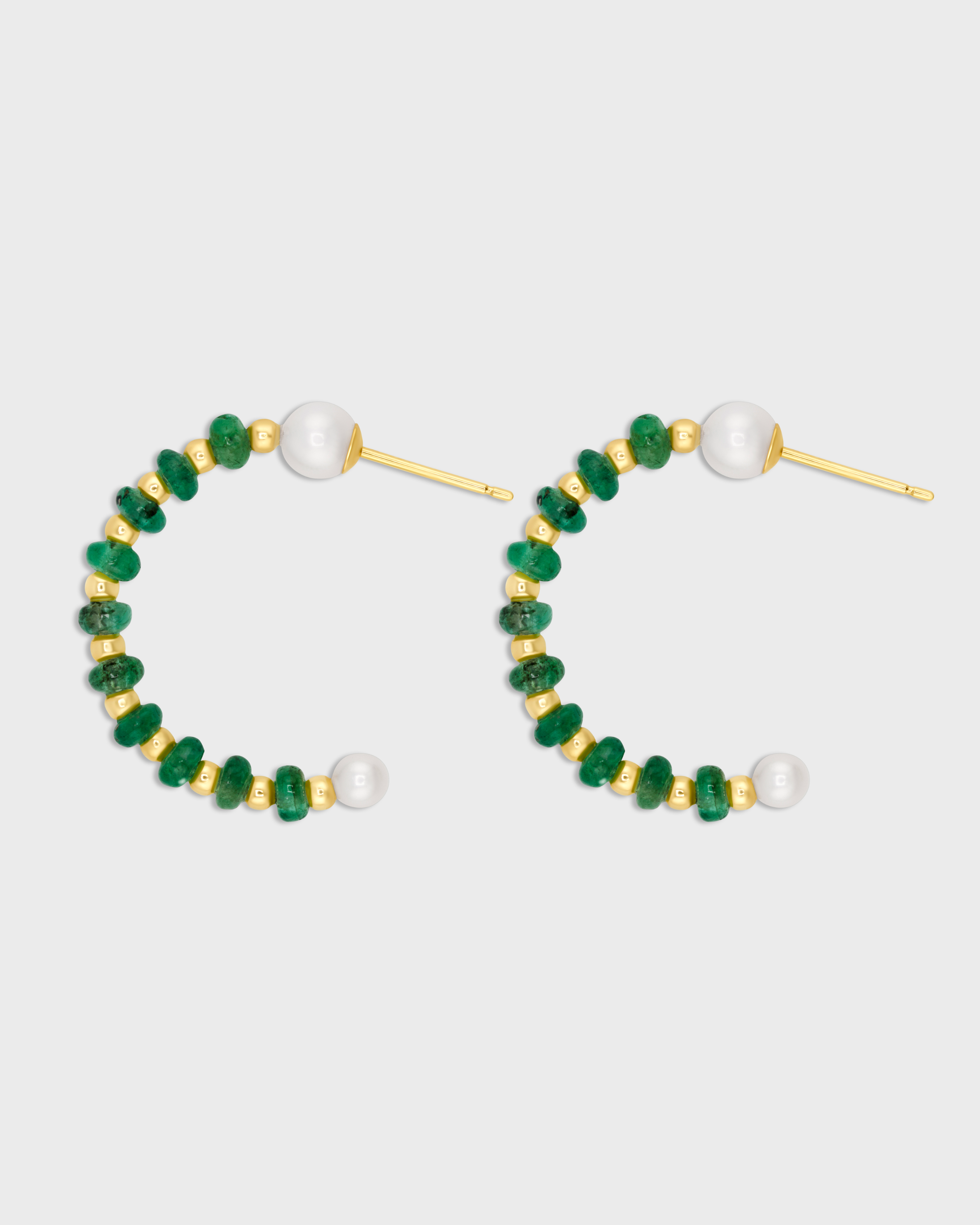 Arizona Small Emerald Pearl Gold Bead Hoop Earrings