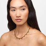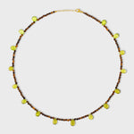 This stunning necklace pairs the warm, golden hues of Tiger’s Eye with the fresh vibrancy of Peridot drops. The combination offers a grounded yet energizing look, perfect for adding a touch of nature's beauty to any outfit.