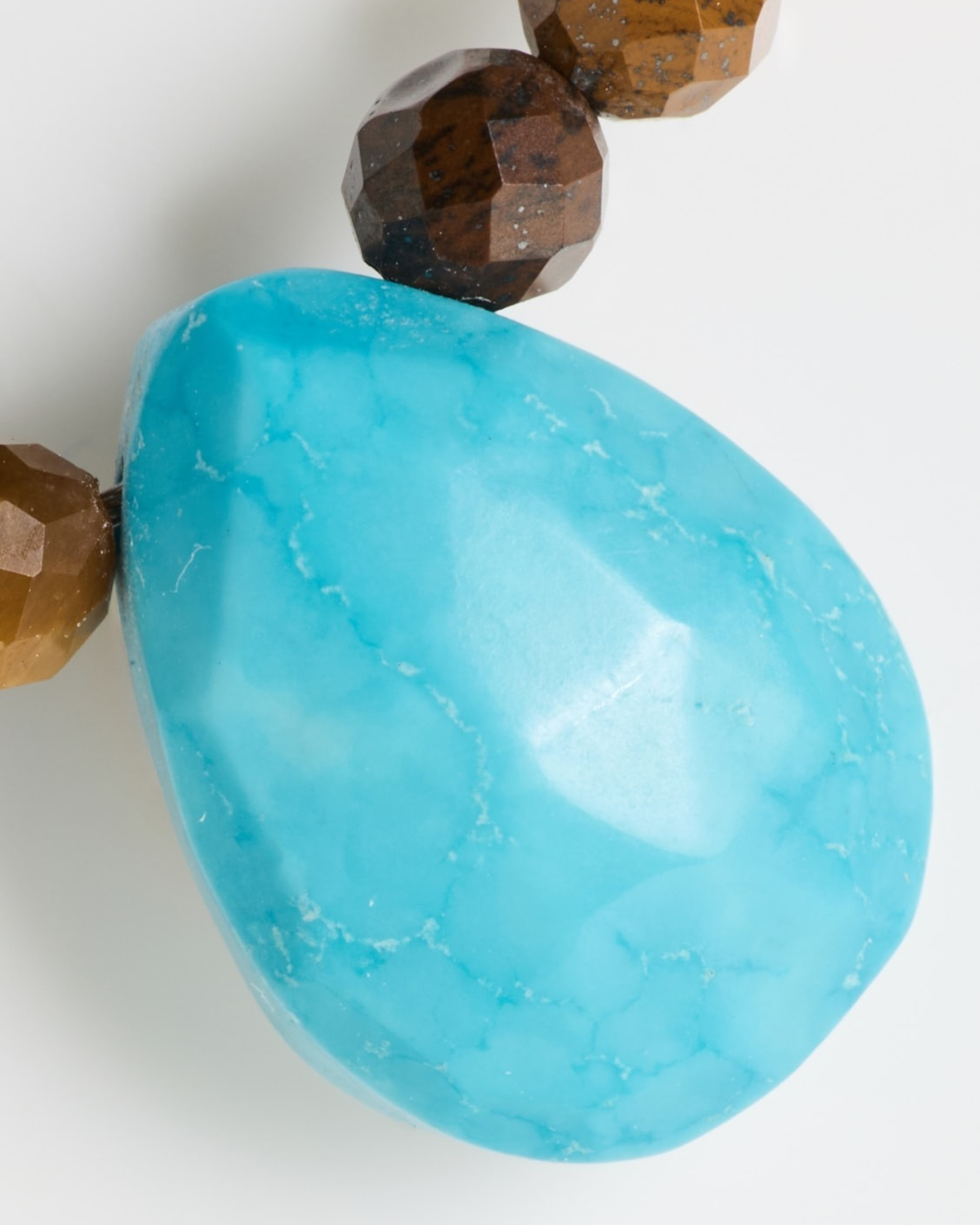 Grounding Tigers eye beads meet a spiritual turquoise teardrop, uniting calm clarity with grounded passion and creativity.