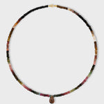 A radiant strand of multicolored tourmaline adorned with a grounding smoky quartz teardrop, symbolizing balance, protection, and renewal.