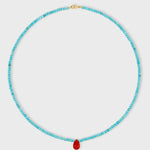 Bright turquoise beads meet a fiery carnelian teardrop, uniting calm clarity with grounded passion and creativity.
