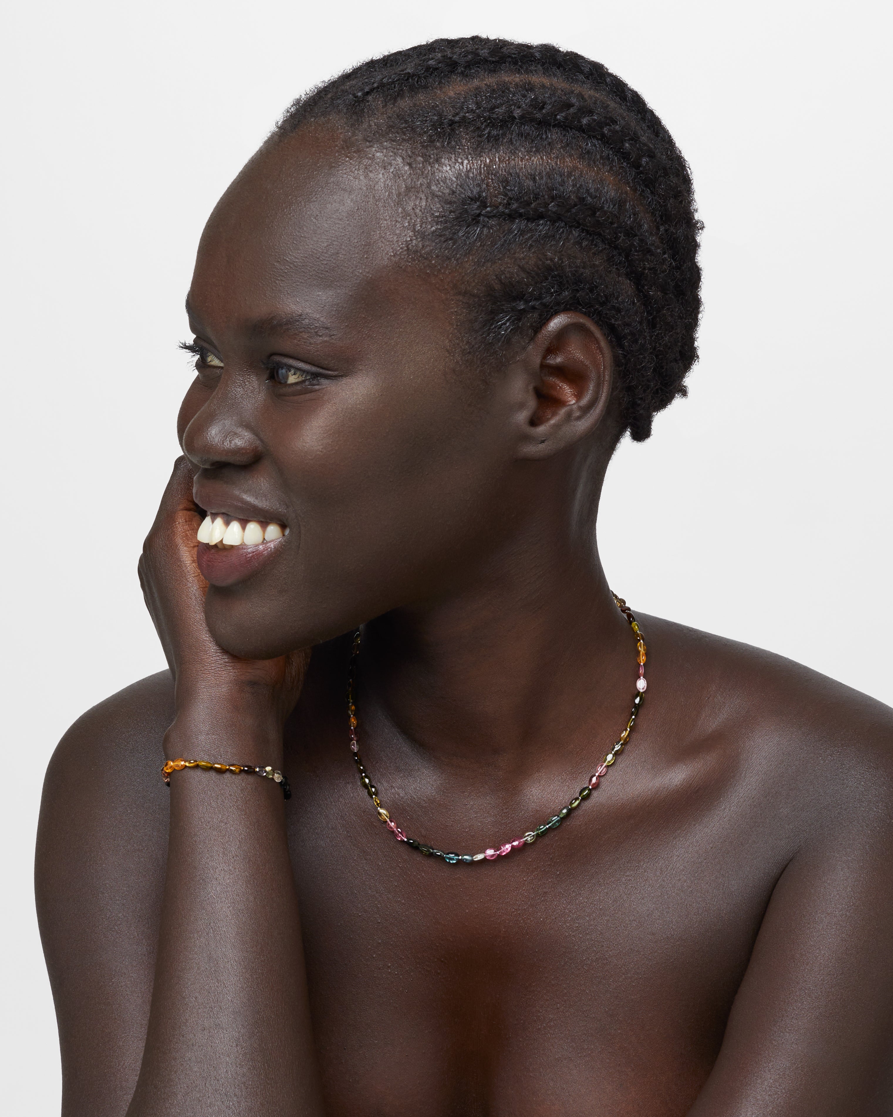 Each beaded jewelry piece is hand strung from the highest quality materials that are cut from natural mineral sources. They are sensitive to prolonged exposure to hairsprays and scents. To ensure longevity please be gentle and avoid tugging and pulling of these pieces.
