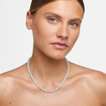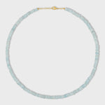 Aquamarine faceted cut gemstone necklace in beautiful bluish hues hand strung in New York and finished with 14 karat gold hardware.