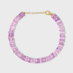 A vibrant lavender quartz hand cut into faceted crystals hand strung with silk in New York City. This bracelet is finished in 14 karat gold.
