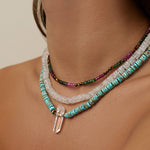 Each beaded jewelry piece is hand strung from the highest quality materials that are cut from natural mineral sources. They are sensitive to prolonged exposure to hairsprays and scents. To ensure longevity please be gentle and avoid tugging and pulling of these pieces.