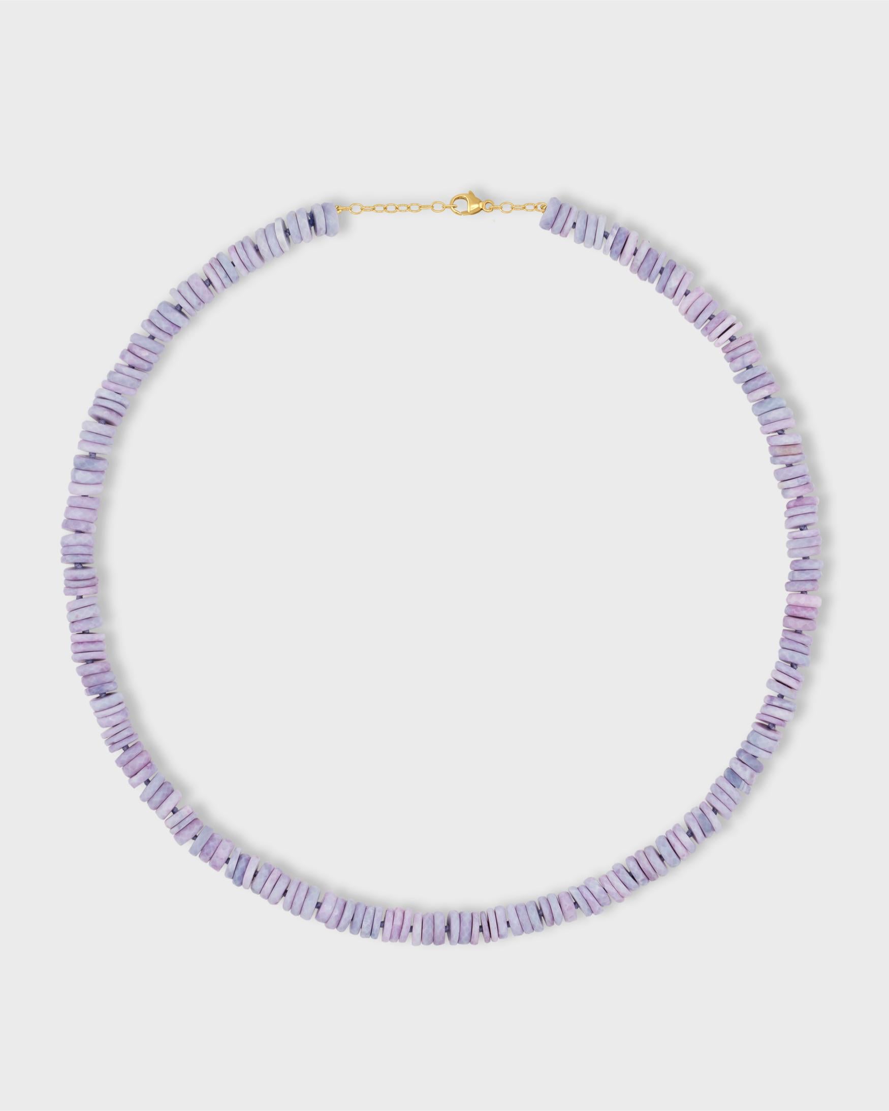 This necklace boasts dazzling purple Opal stones that shimmer with iridescent beauty, set in a refined and modern design. Its vibrant color and striking finish create an eye-catching accessory, perfect for special occasions.
