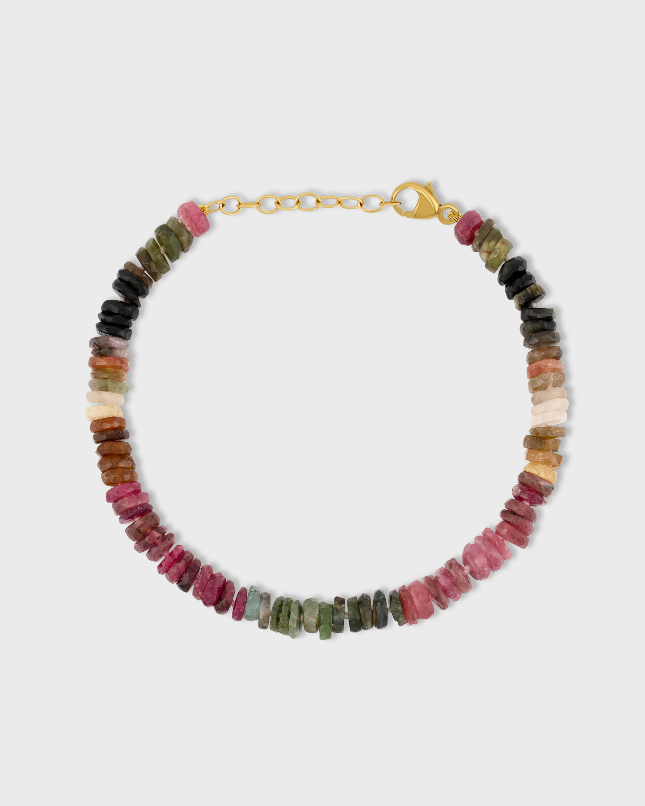 Incredible and gemmy fancy cut watermelon tourmaline bracelet worn long and beautiful to layer.