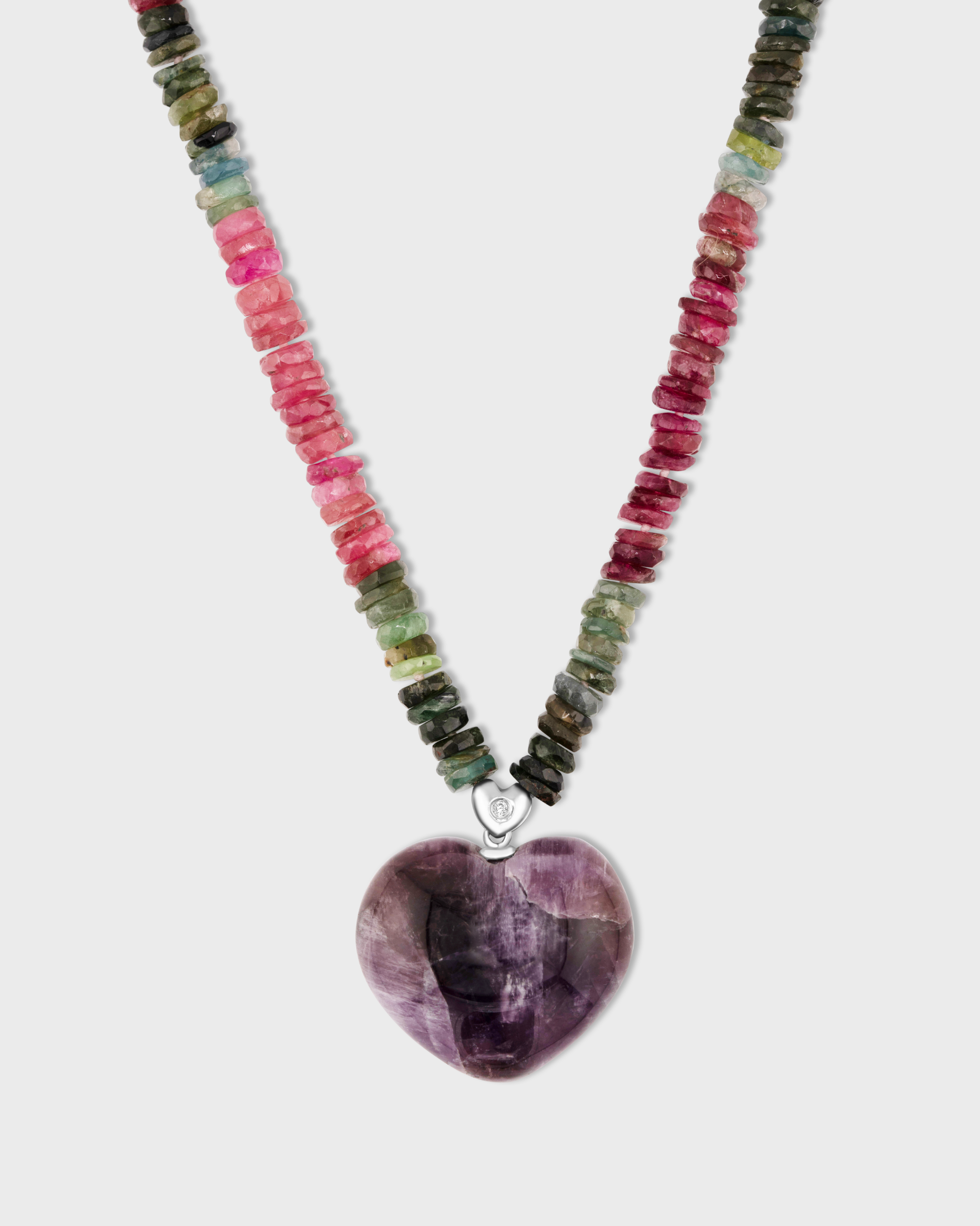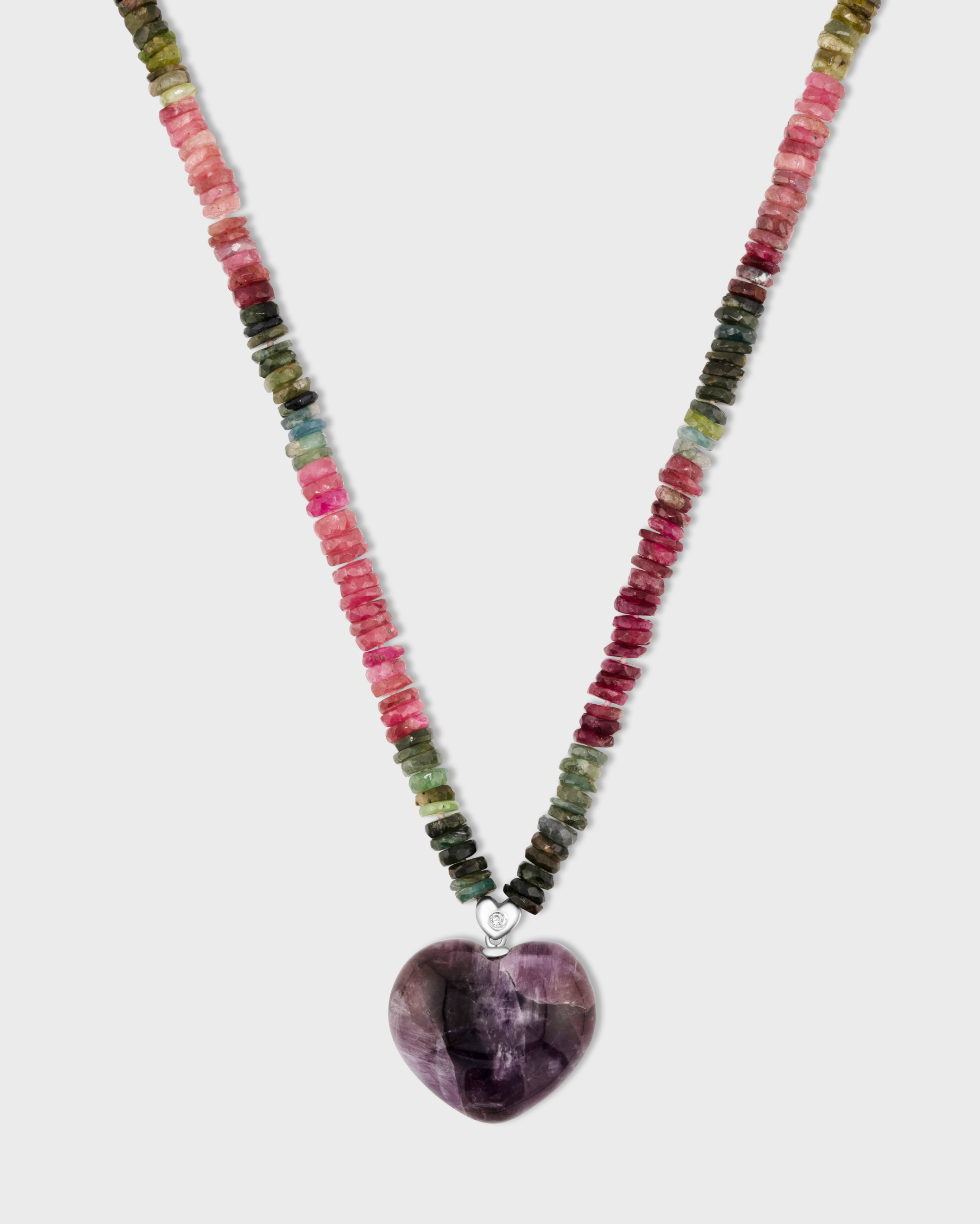 Aurora Tripache Amethyst Diamond Heart Tourmaline Necklace