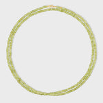 A double long strand of faceted peridot beads, hand-strung and finished with a delicate gold clasp. Designed to be worn long or doubled for effortless layering, this piece celebrates the beauty of natural color and form.