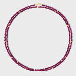 This Double Long Necklace features faceted Ruby beads accented with delicate gold spacers for a soft, luminous contrast. Designed to be worn long or doubled, it’s an effortless piece that layers beautifully or stands on its own.