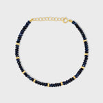 Faceted Sapphire beads are thoughtfully hand-strung with gold accents in this refined bracelet, celebrating natural color and variation. A timeless piece that adds a gentle glow to the wrist.