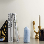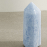 Our hand-carved and polished natural blue calcite tower is the perfect addition to any space in your home. Blue calcite is known as the stone of the mind and can help encourage feelings of peacefulness and tranquility.