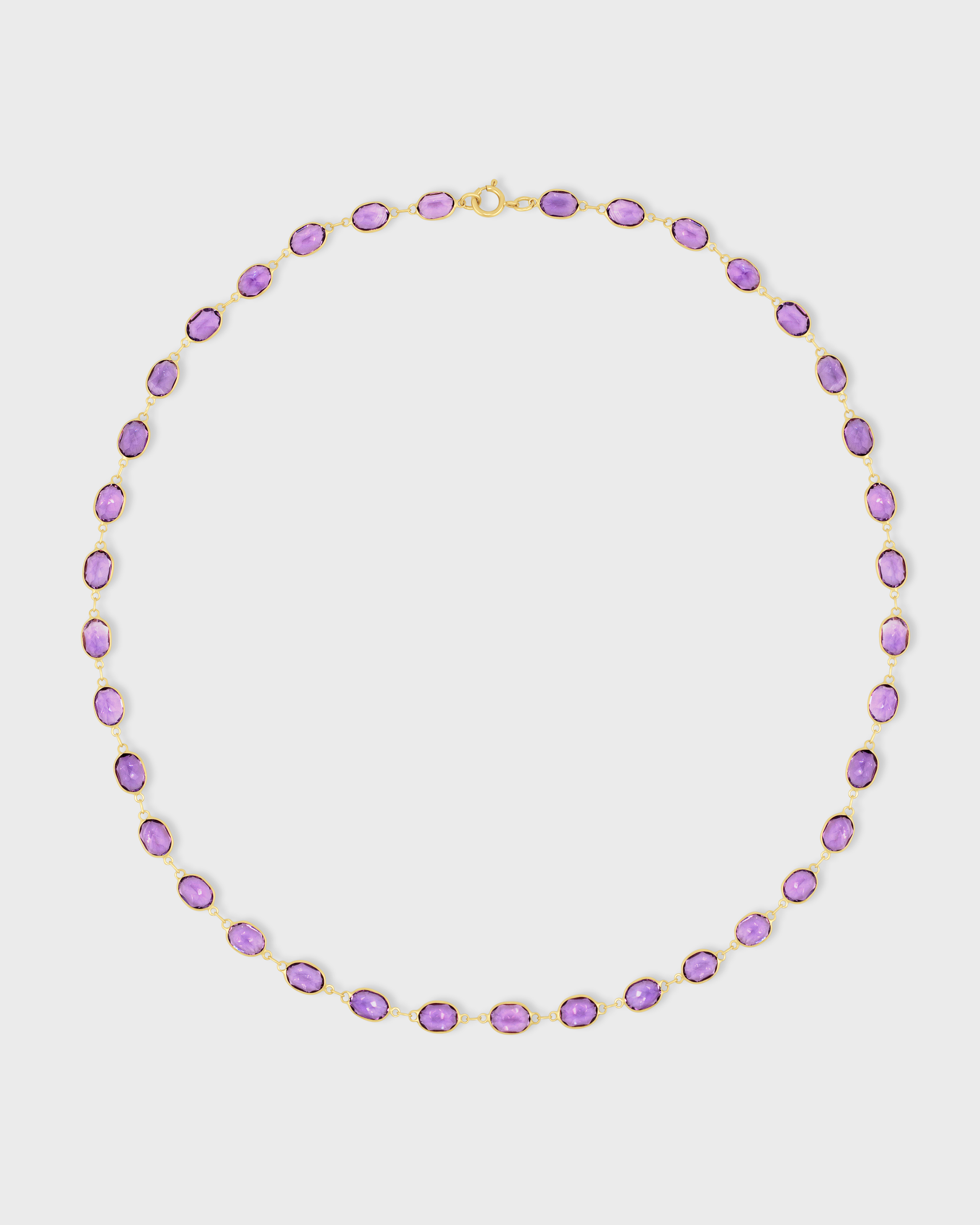 Crafted with beautiful oval-shaped amethyst stones, this station necklace offers a seamless blend of color and style. Its simple yet striking design ensures it stands out while remaining versatile for any occasion.