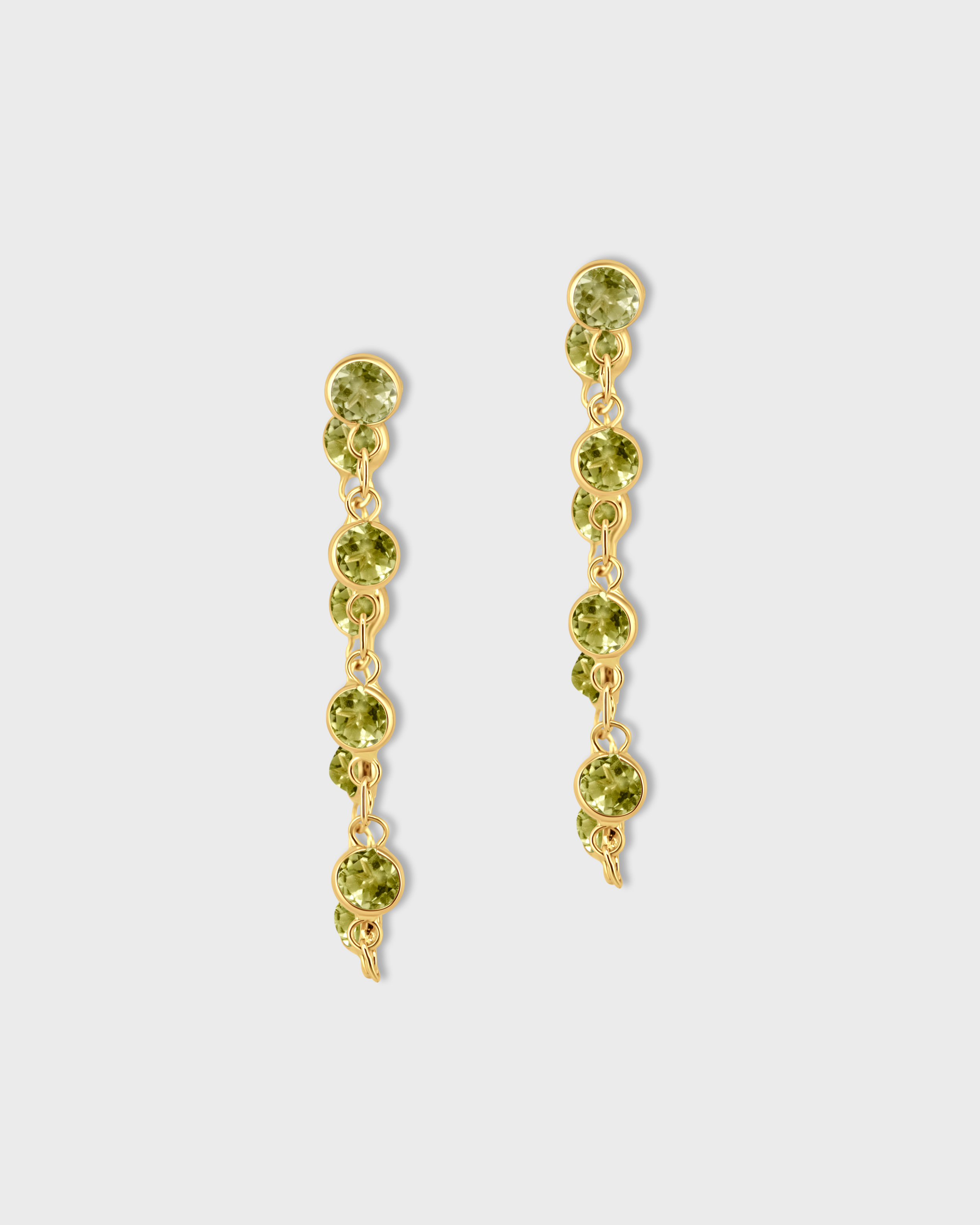 Chakra Peridot Gold Bezel Drop Earrings