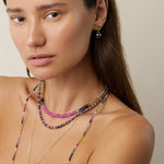 Each beaded jewelry piece is hand strung from the highest quality materials that are cut from natural mineral sources. They are sensitive to prolonged exposure to hairsprays and scents. To ensure longevity please be gentle and avoid tugging and pulling of these pieces.