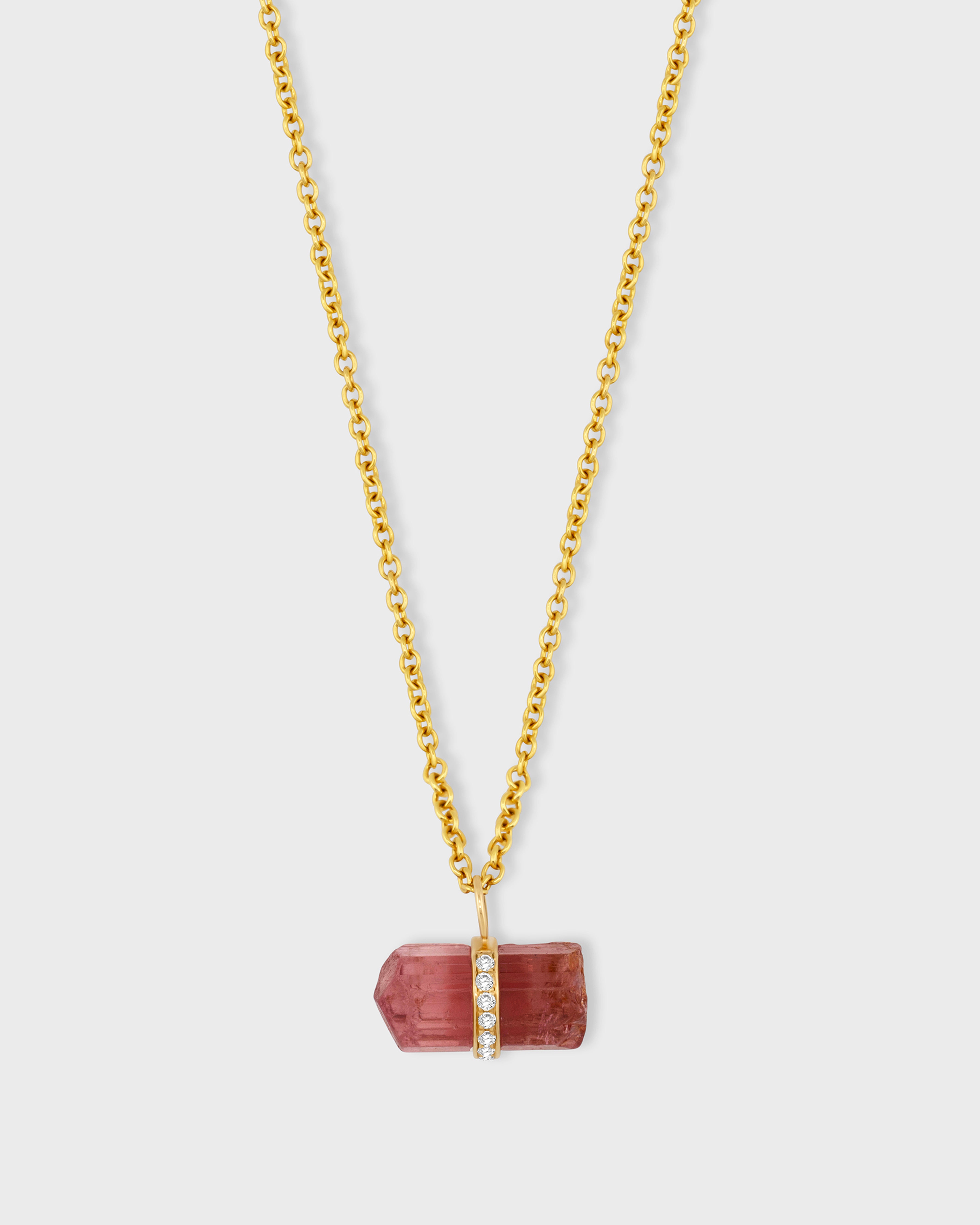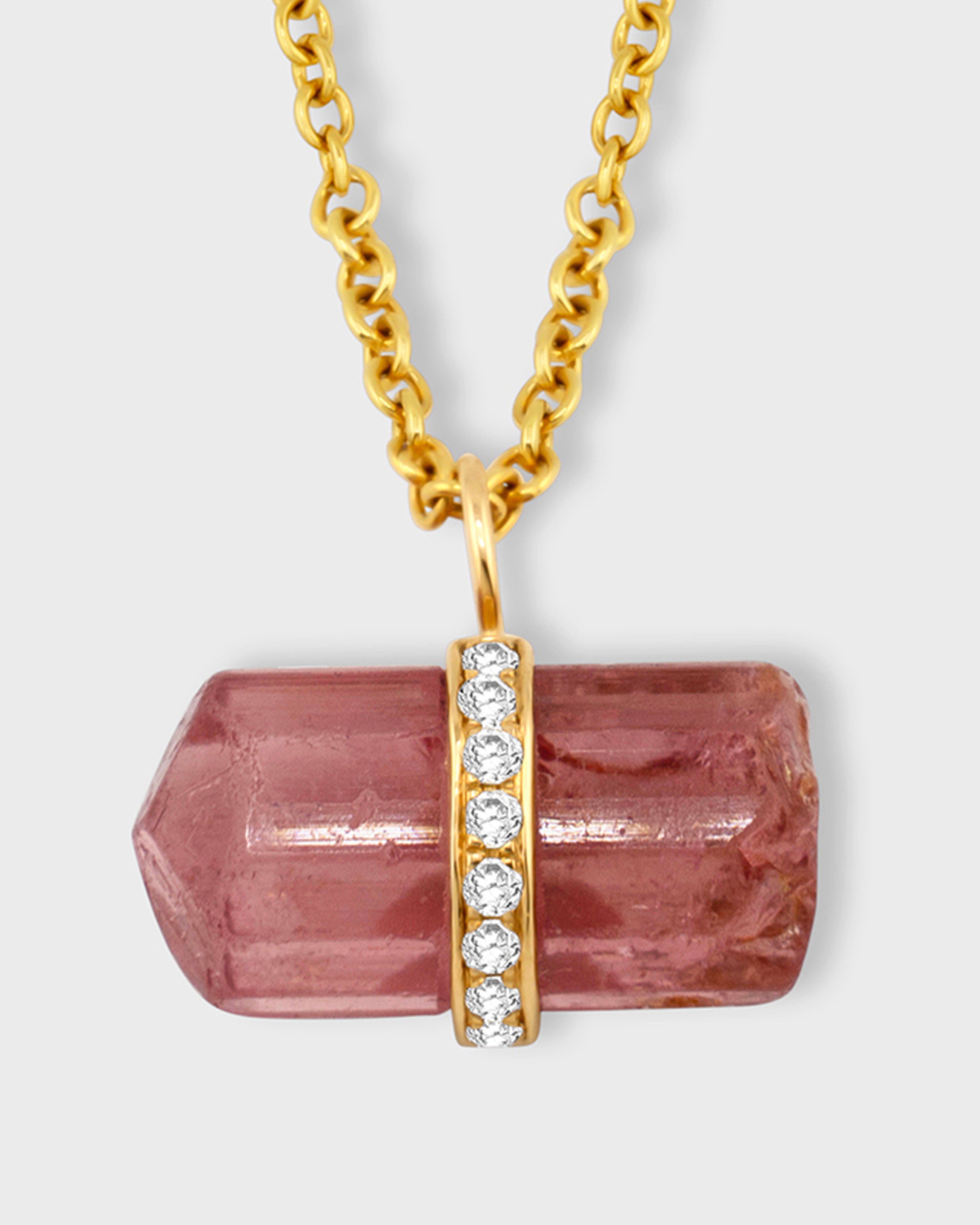 Crystalline Pink Tourmaline Diamond Charm Necklace