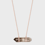Crystalline Smoky Quartz Double Diamond Bar Rose Gold Necklace