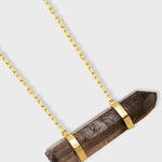 Crystalline Smoky Quartz Double Gold Bar Necklace